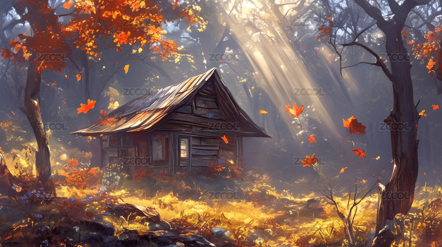 立秋节气户外旅行自然风景处暑卡通唯美插画
