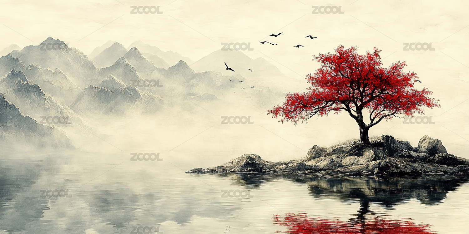 秋天的中国风山水风景画