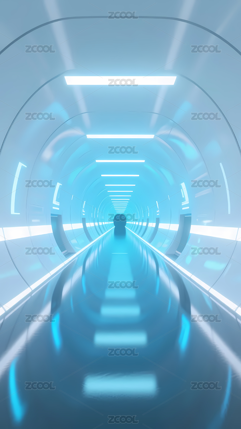 蓝色灯光隧道,未来感十足