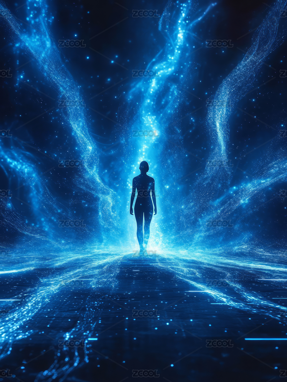 女子立于奇幻光影中