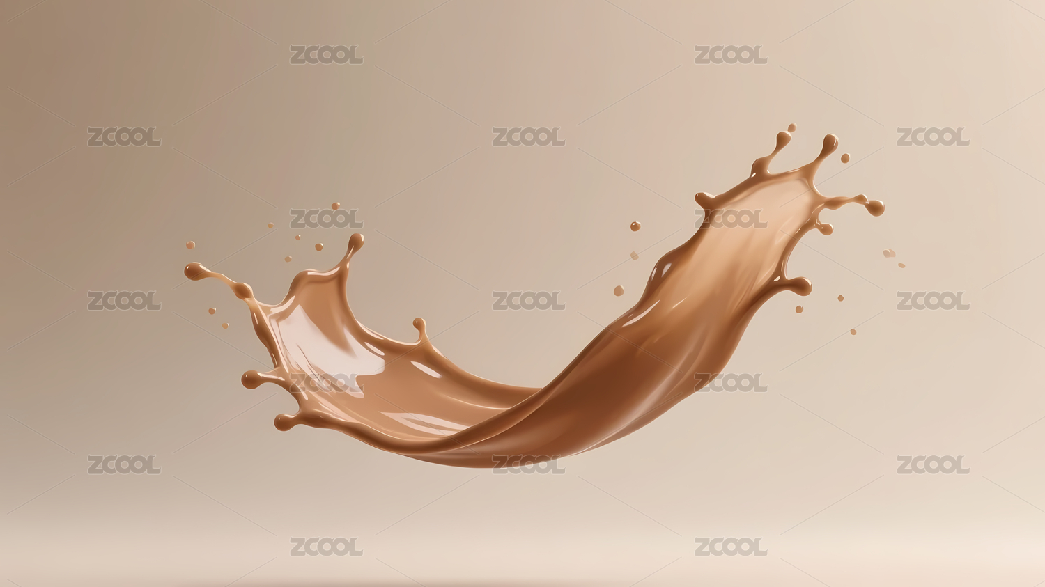 飘溅的棕色液体与米色背景