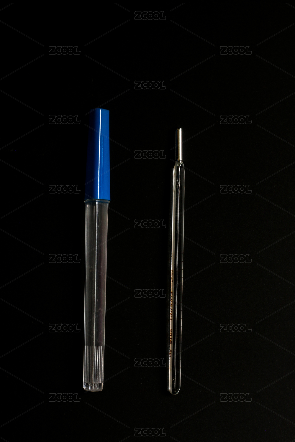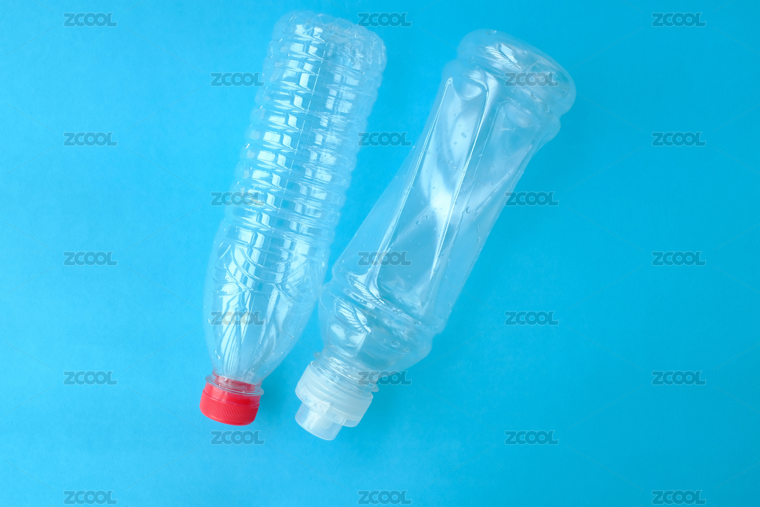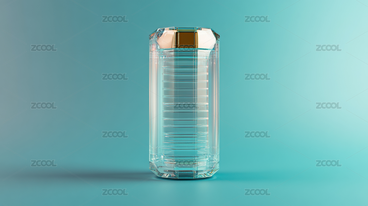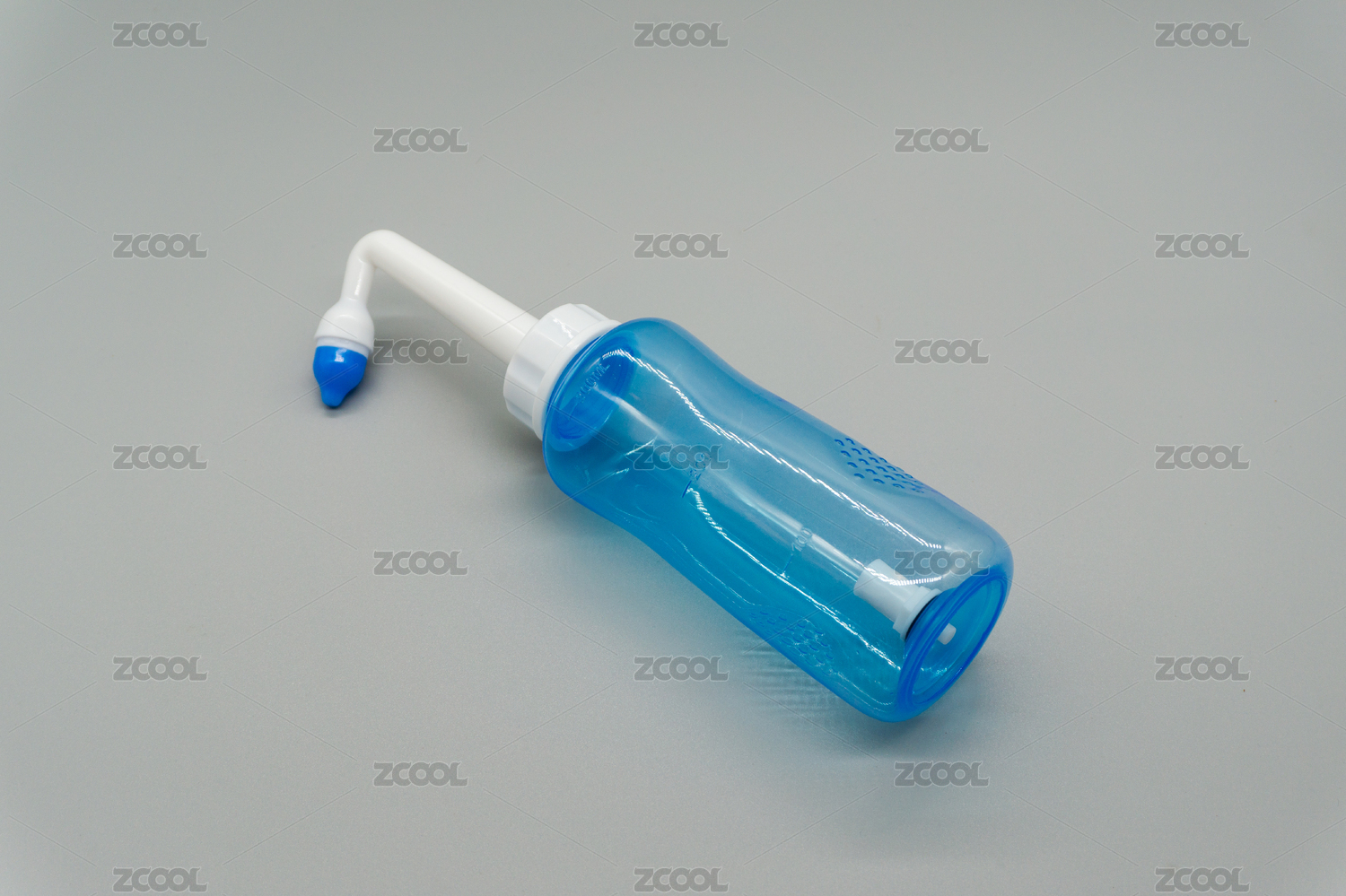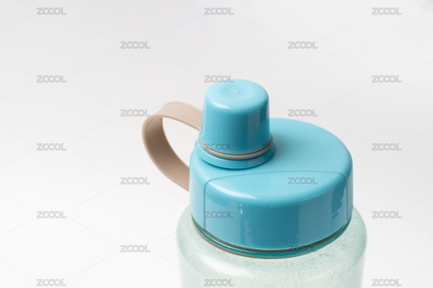 摆放在白色背景前的圆柱形蓝色塑料泡沫分装瓶