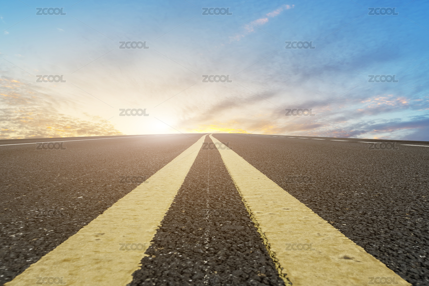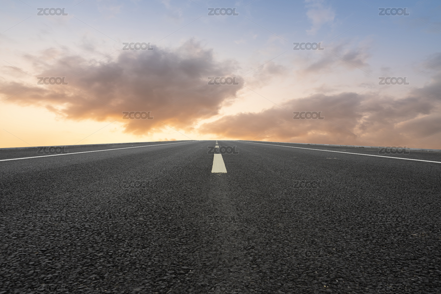 道路地面天际线和天空云彩