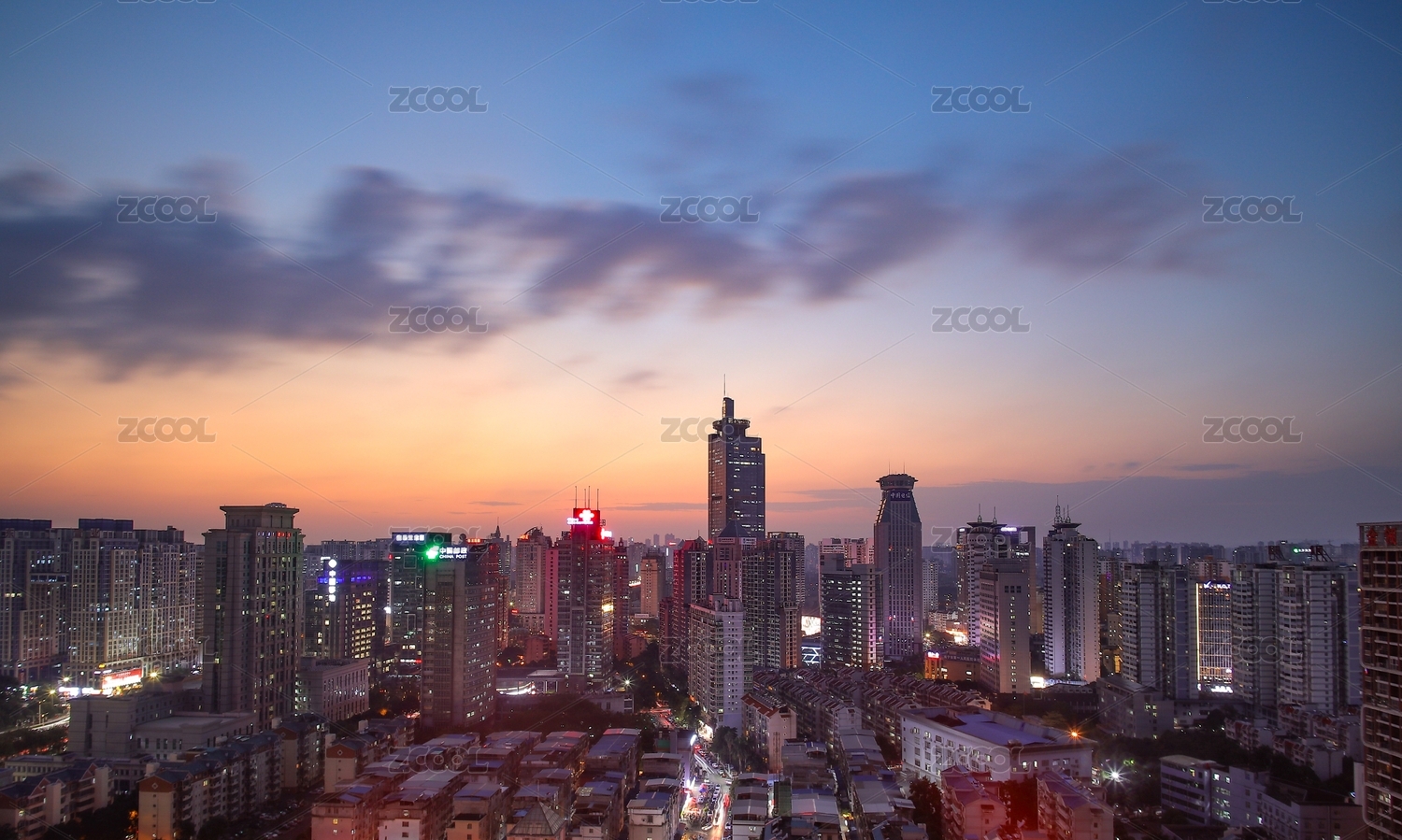 日落天津直沽桥海河沿岸城市建筑夜景航拍