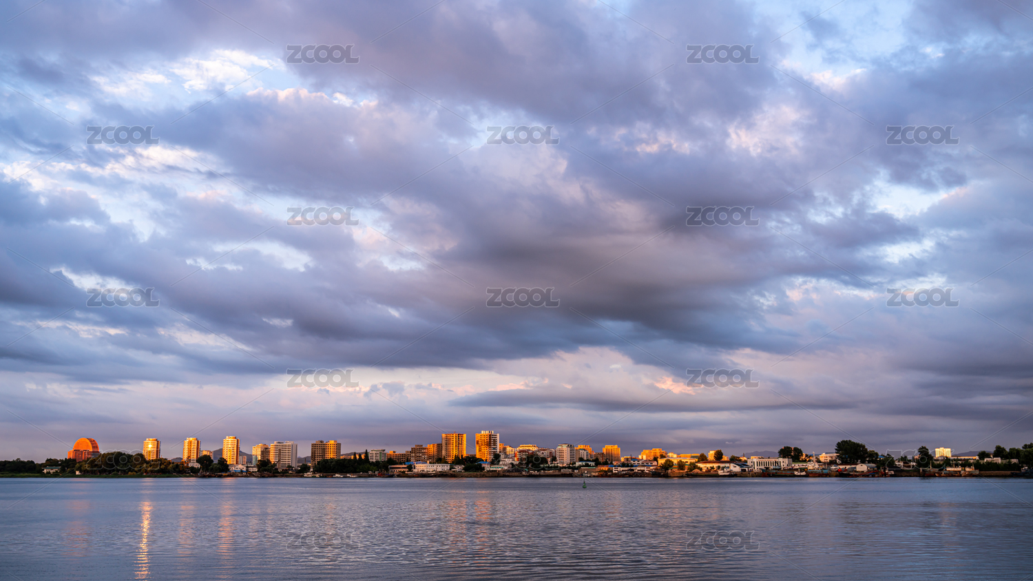 法属留尼旺岛岸边的印度洋海面和晚霞