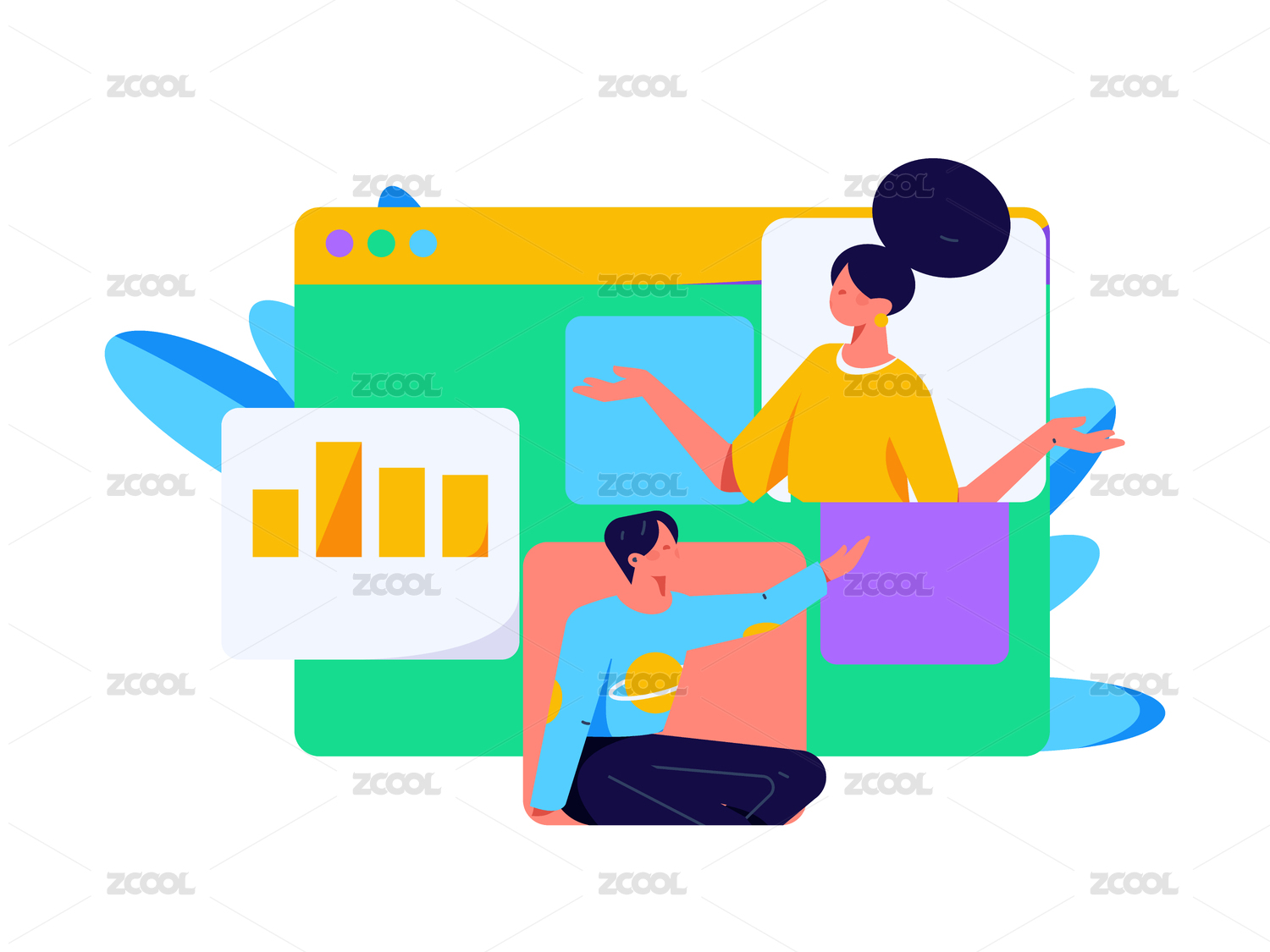 工作的男女2, 矢量扁平人物场景创意概念插画