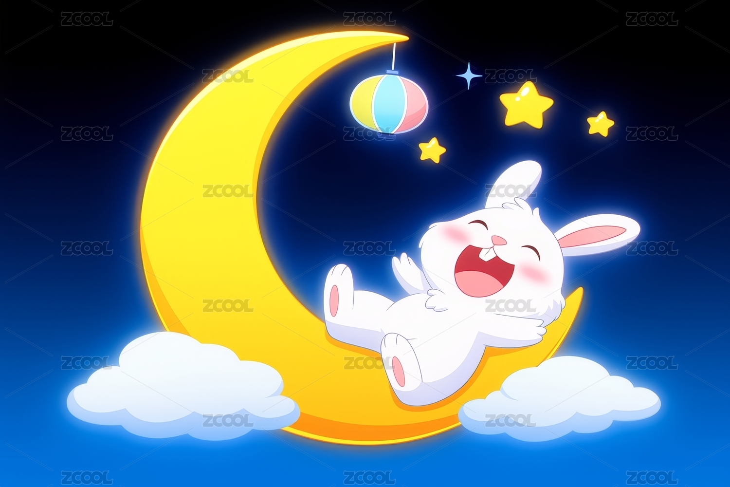 月满中秋节日玉兔愉快地赏月氛围感美景