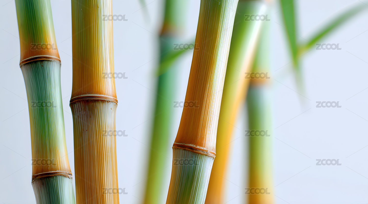 透明竹子与绿叶的和谐画卷