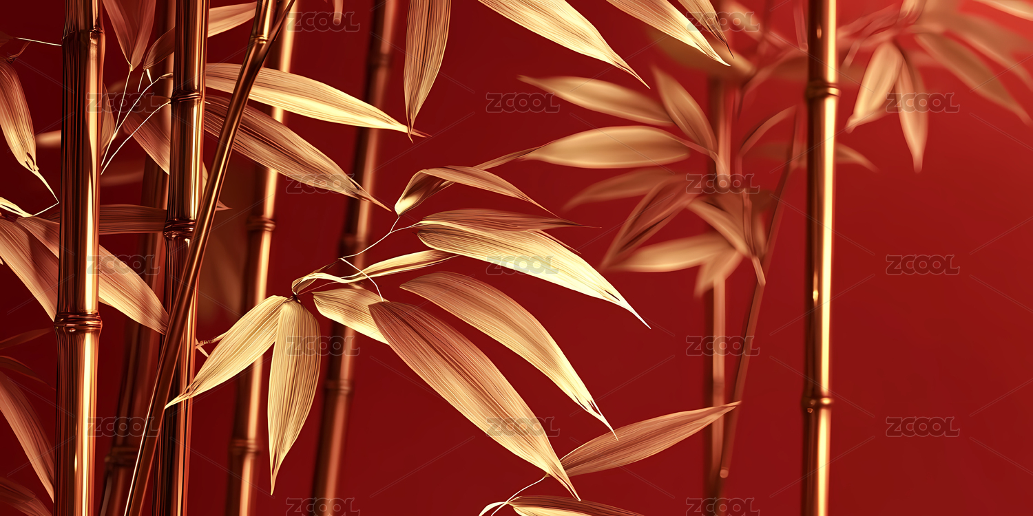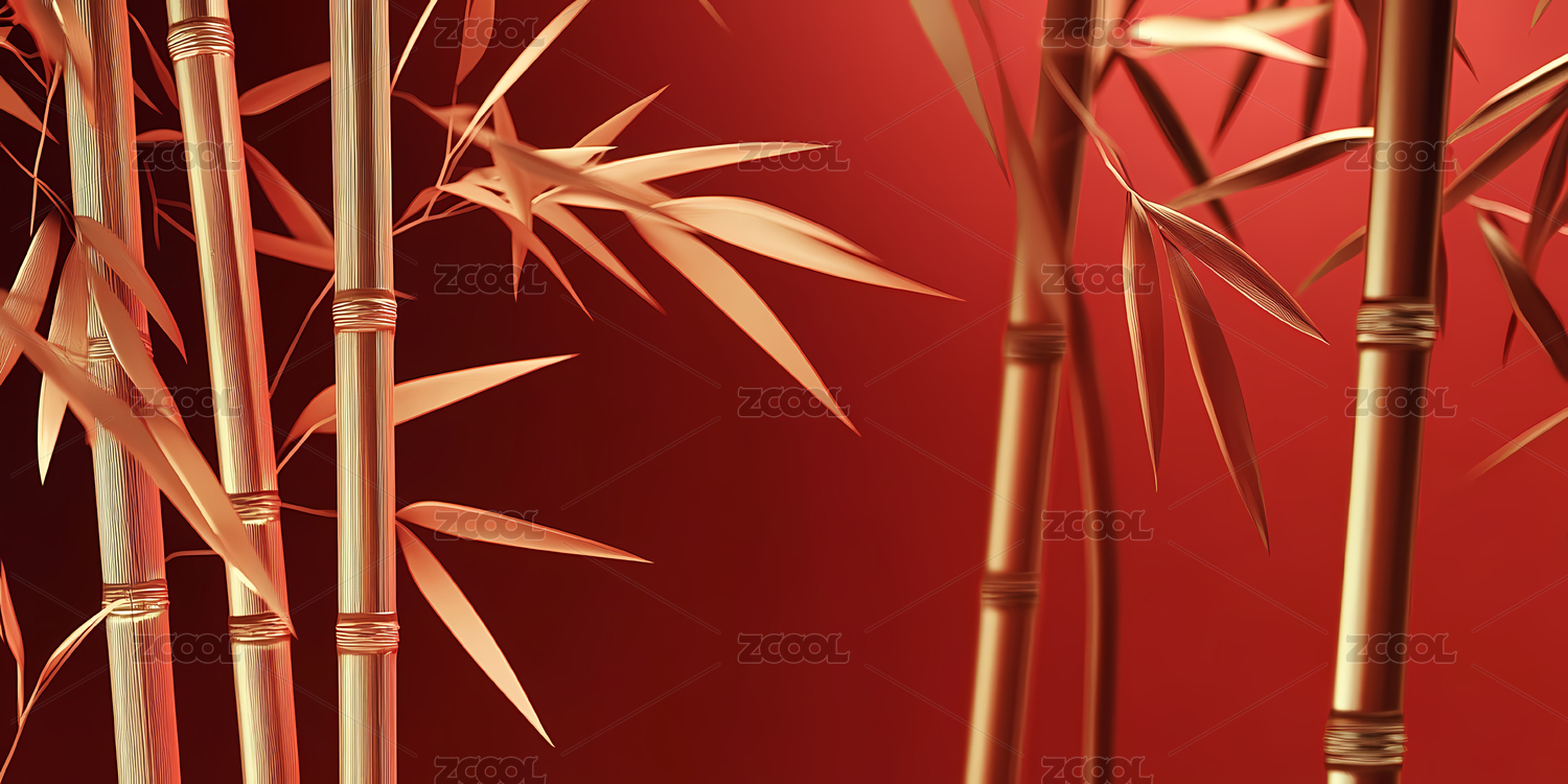 金色竹子与红色背景