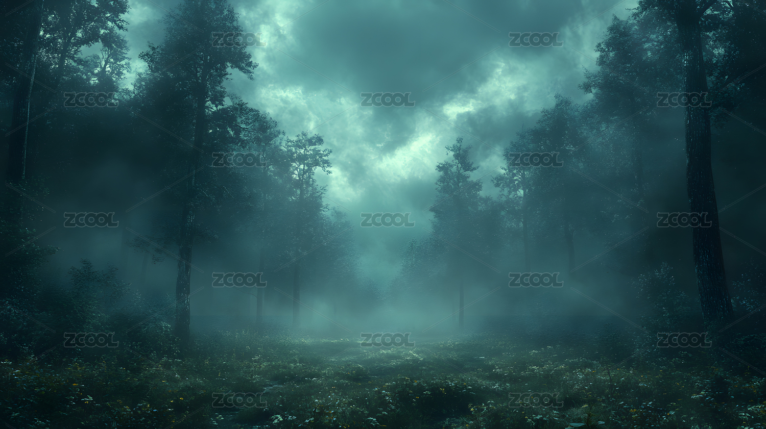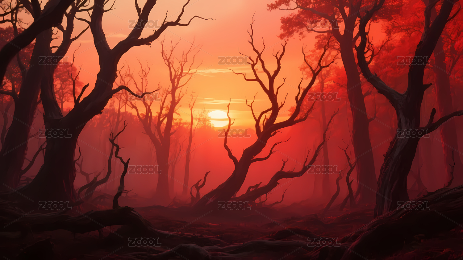 神秘,光影,树林,树木,朦胧,小路,环境,景色,红色,迷雾