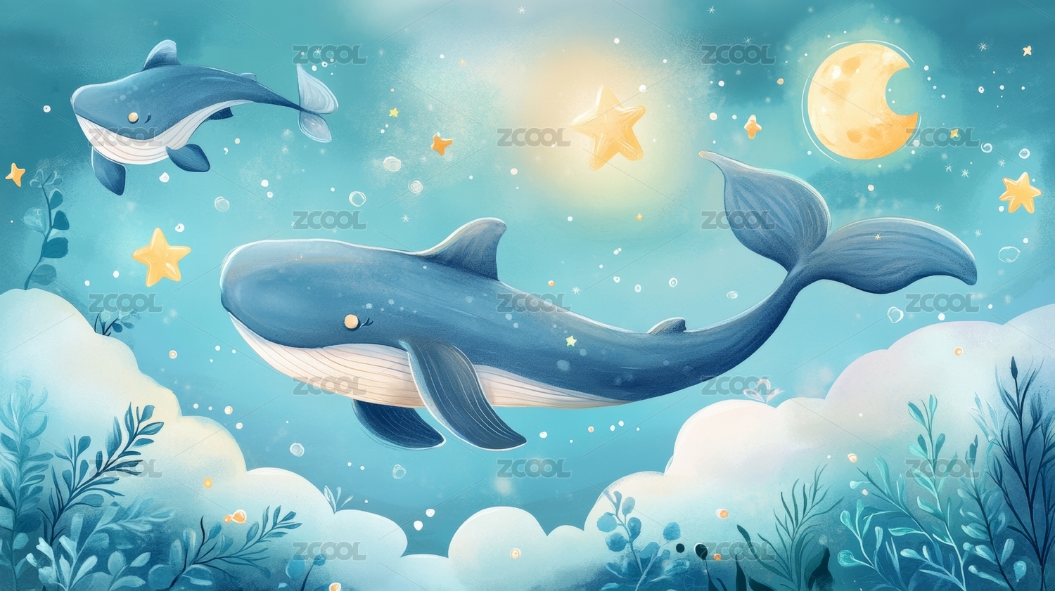 自然,艺术,鲸鱼,海洋,天空,绘画,风格,唯美,飞鸟,水墨