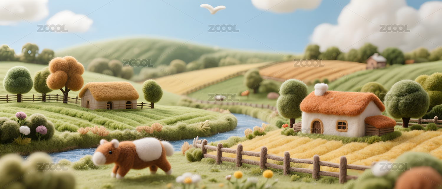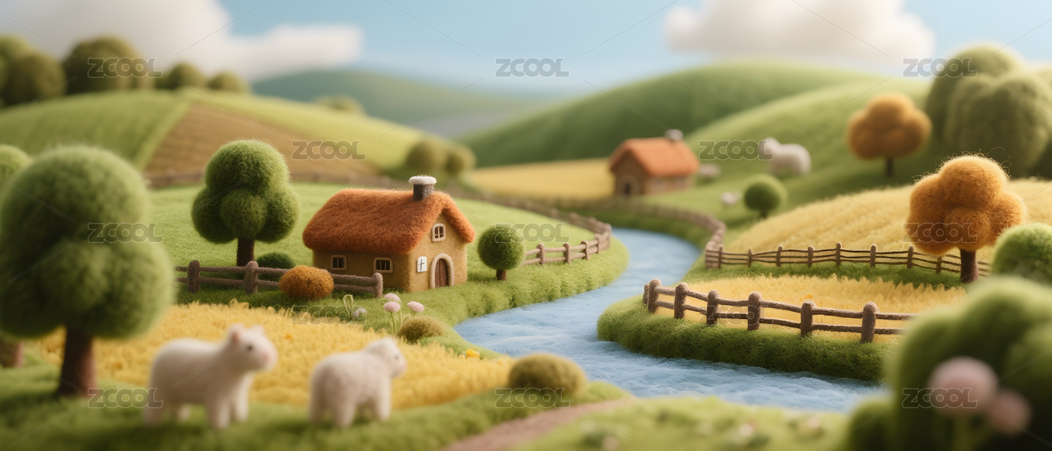 卡通农场田园风光3D羊毛毡风格