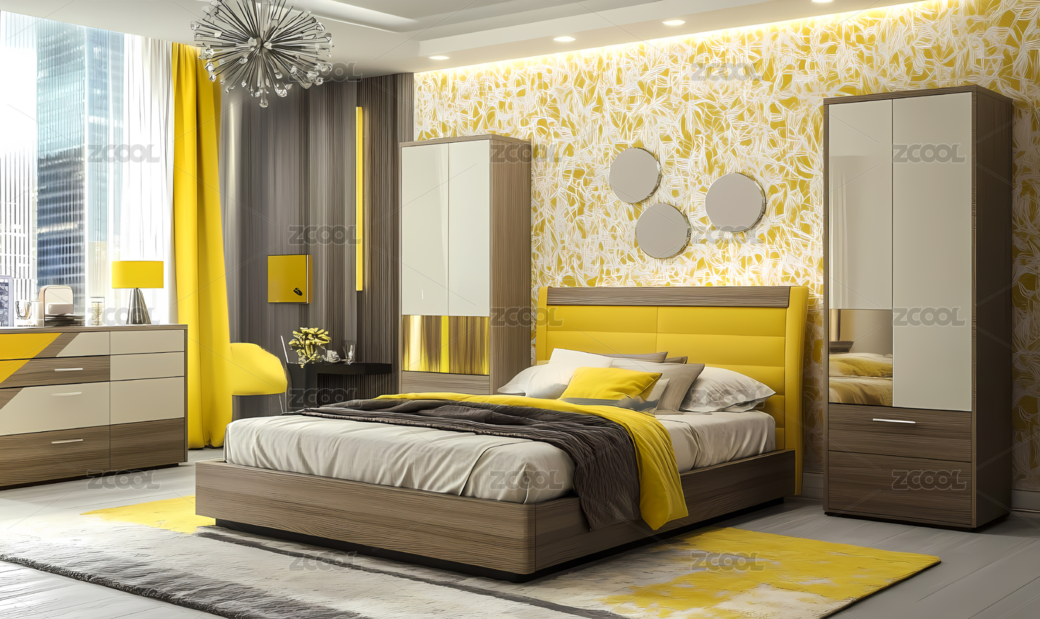 卧室,现代,简约,床,装饰,室内,设计,植物,地毯,灯具