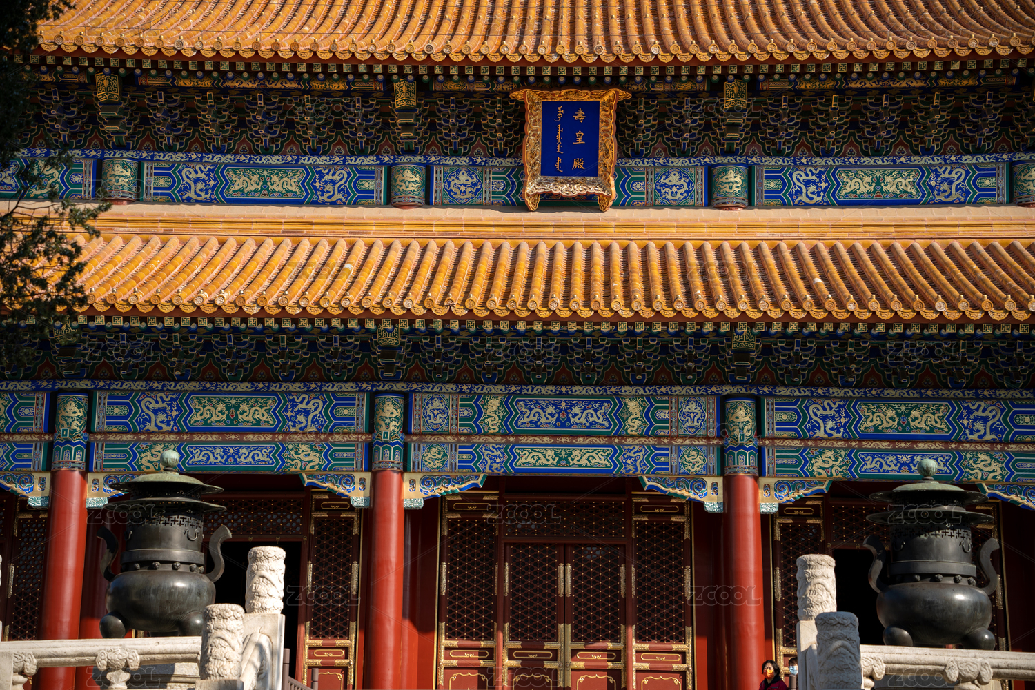 现代男性在横店影视城的明清宫苑的紫禁城游