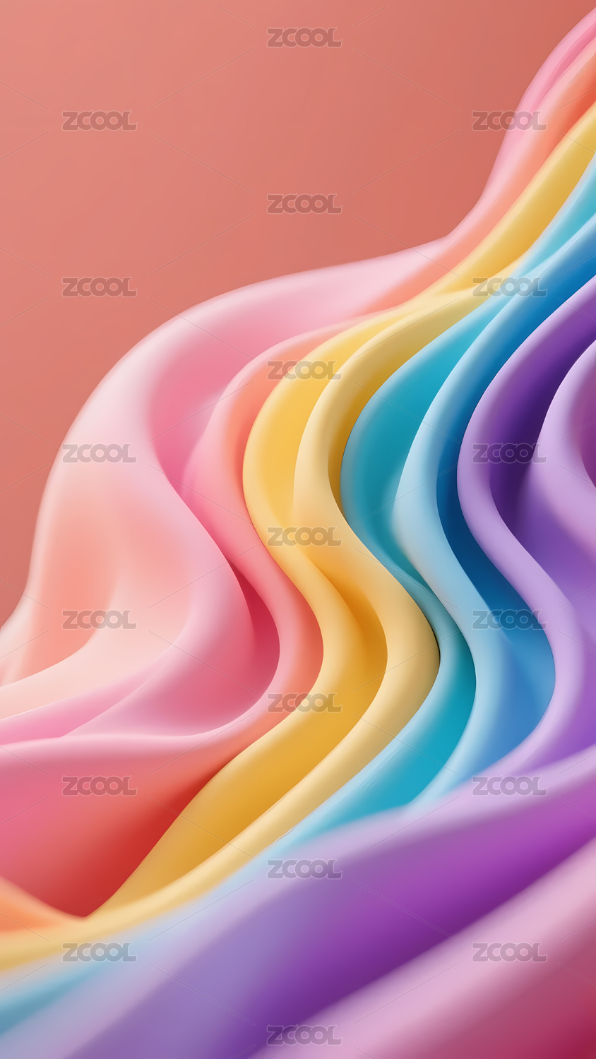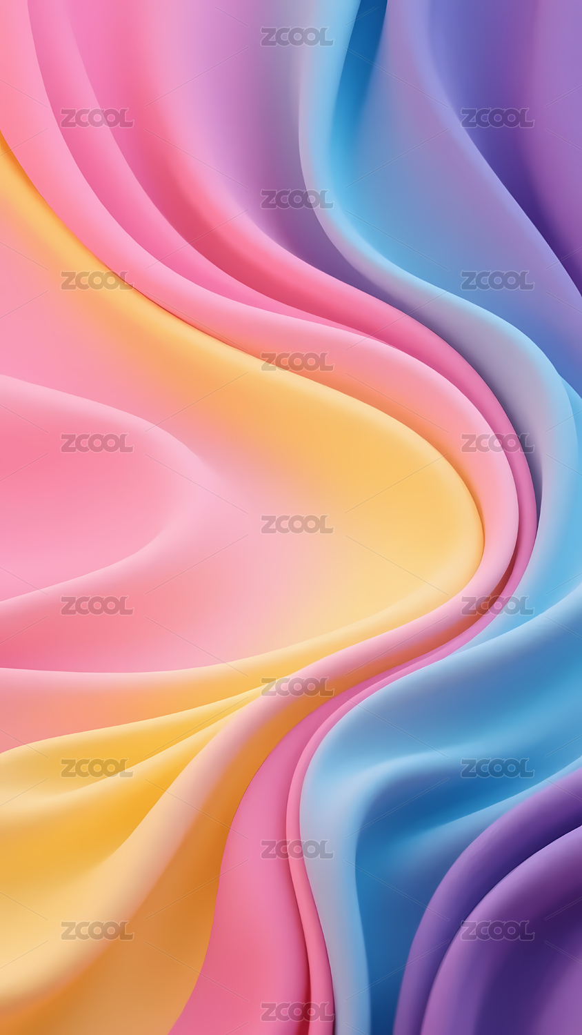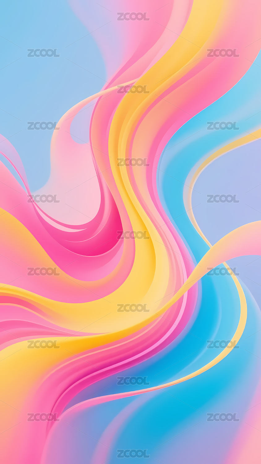 数码彩色柔和曲线抽象海报手机端背景