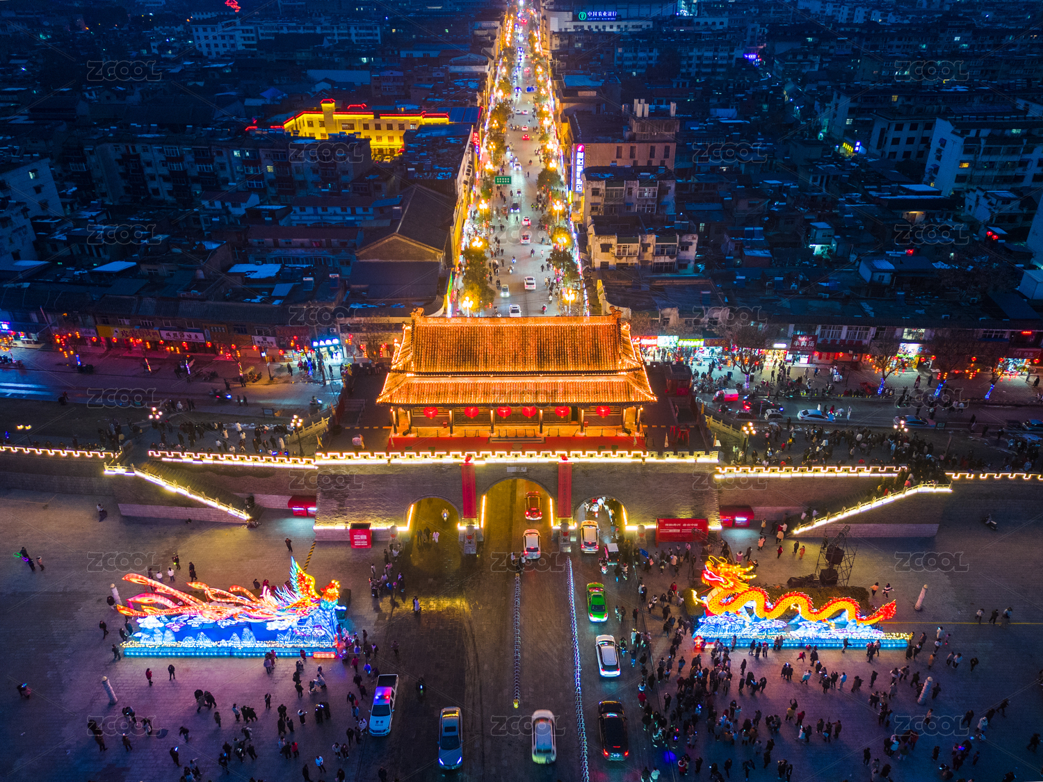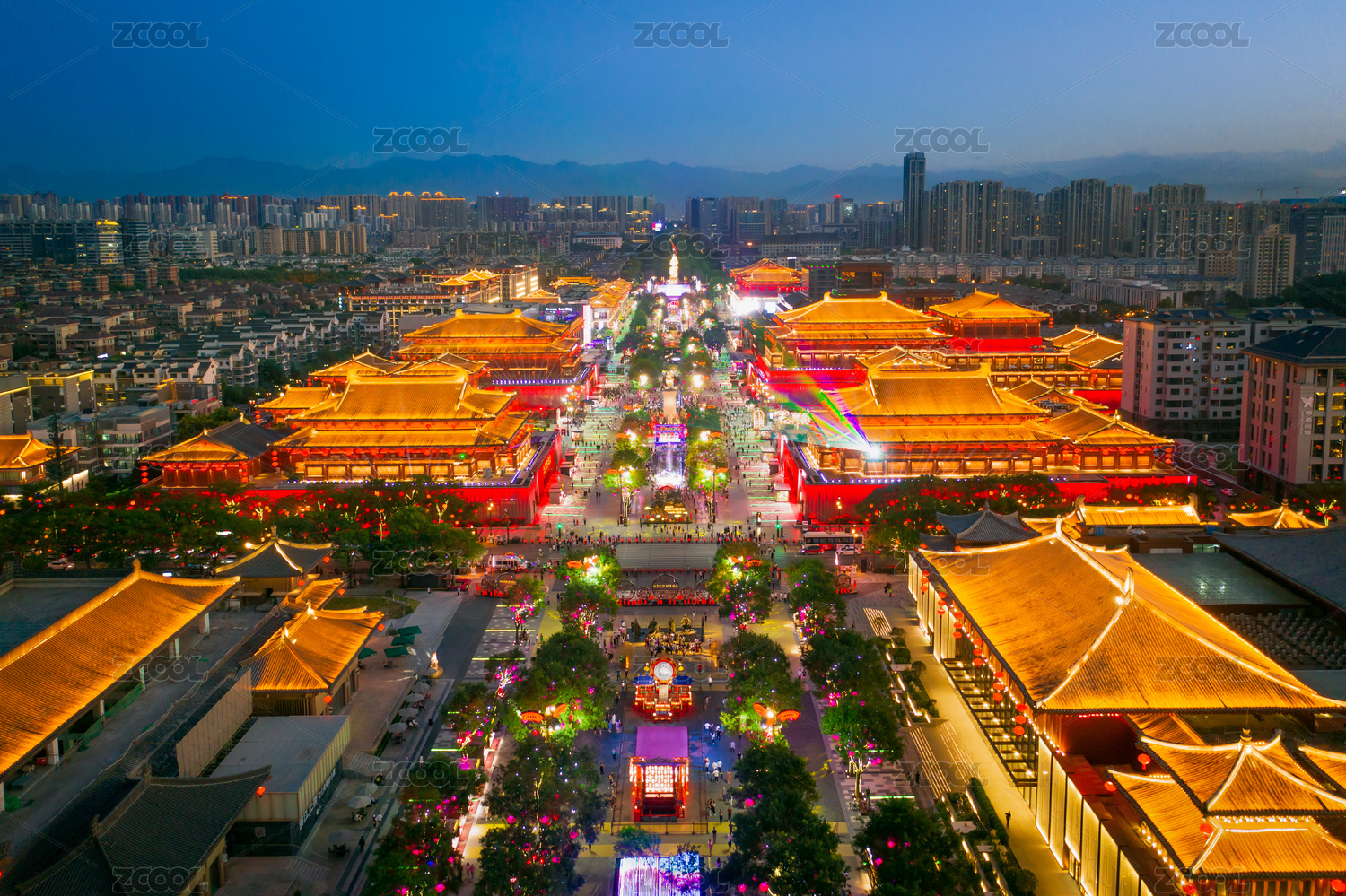 大唐不夜城,航拍,都市风光,夜晚,航拍视角,西安,都市风景,唐朝,户外,旅游目的地