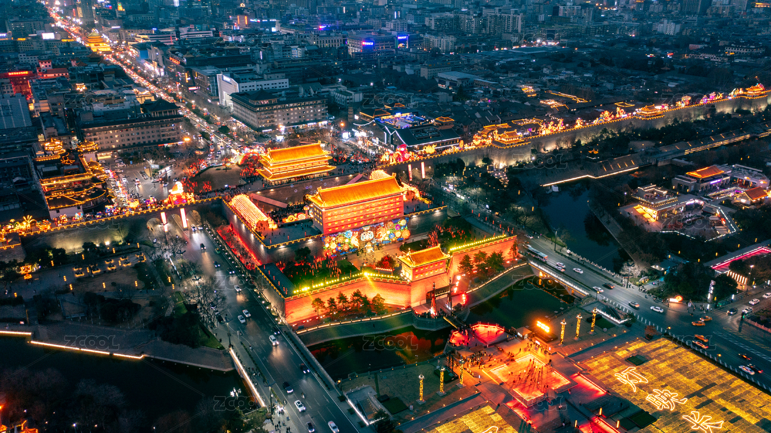 西安城墙灯会航拍