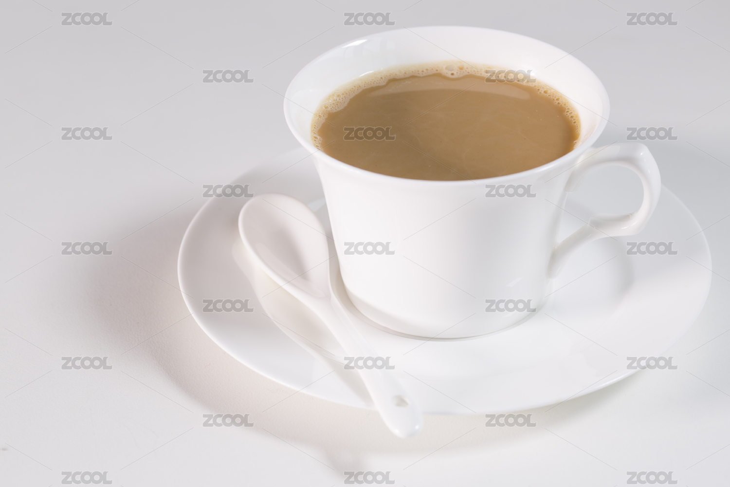 一杯咖啡,白色背景,俯视视角