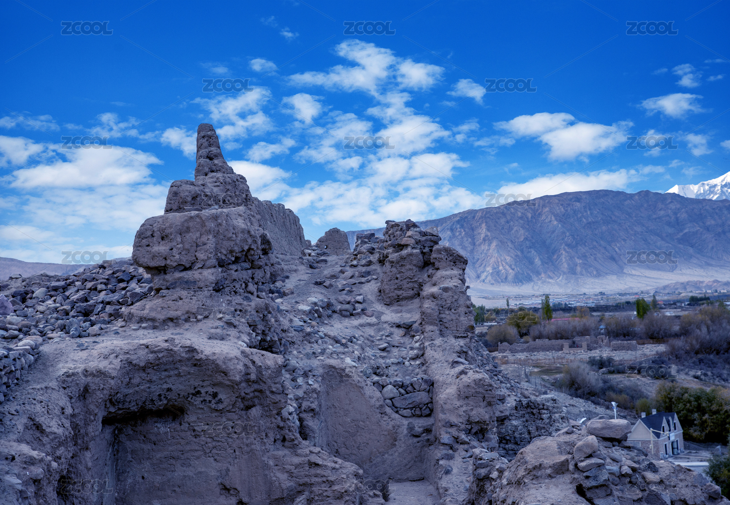 中国新疆阿克苏库车苏巴什佛寺西寺遗址佛塔