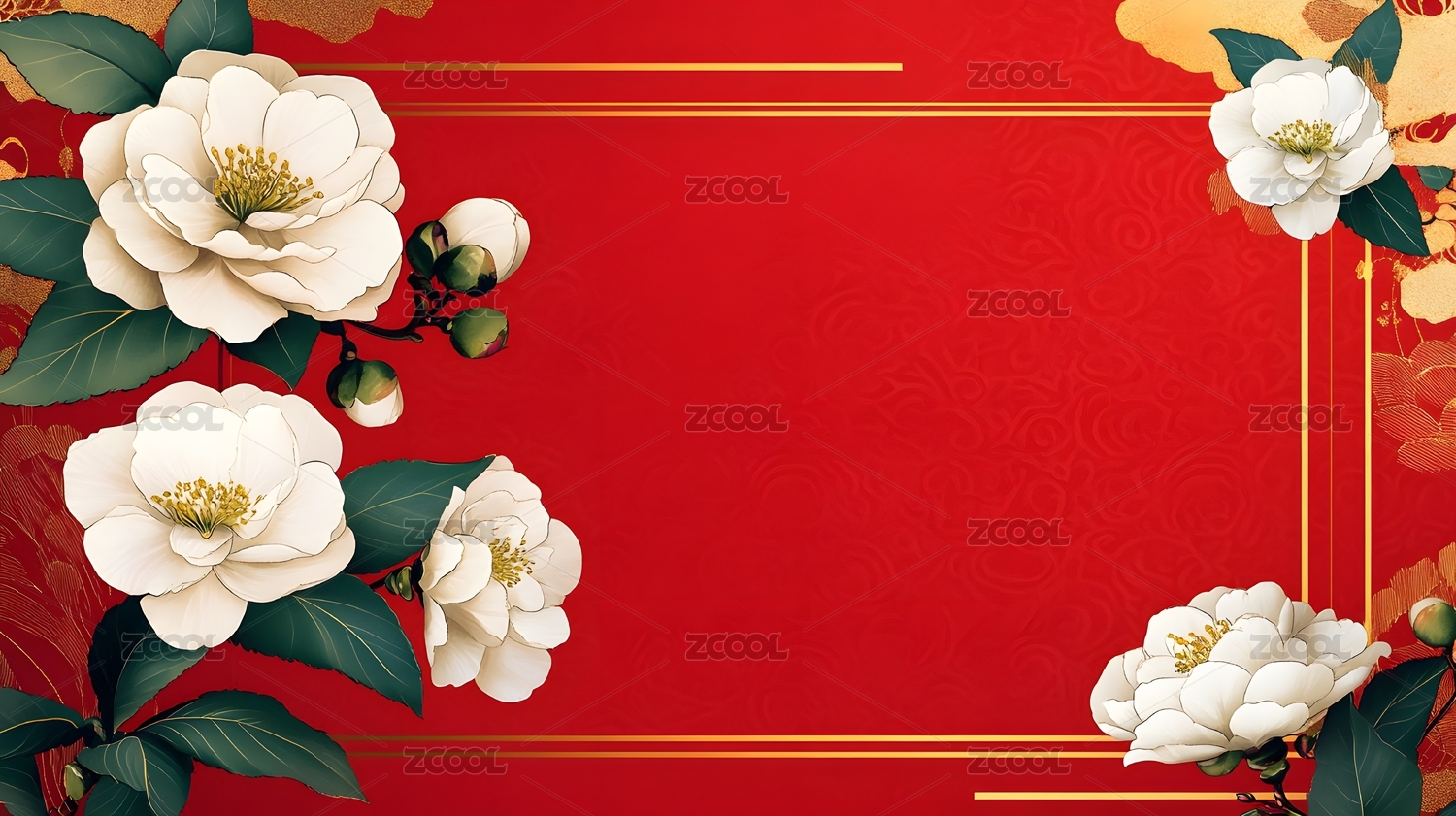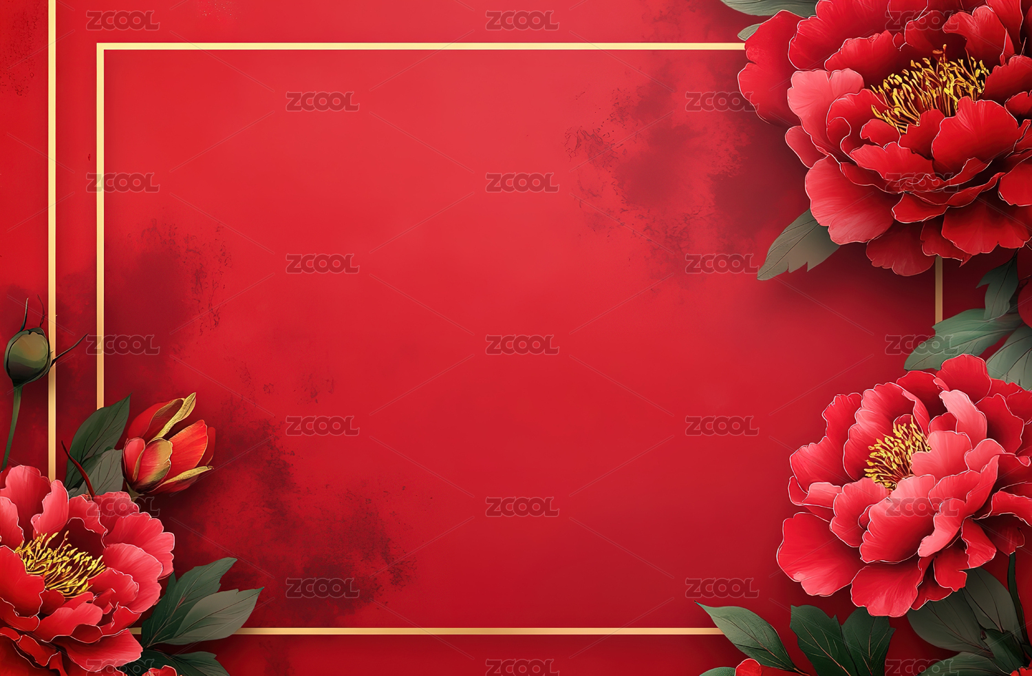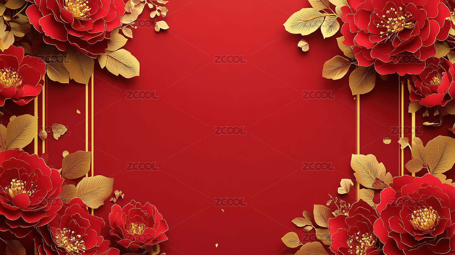 中国风,红色,植物,花卉,叶子,喜庆,背景墙,展台,展示,电视