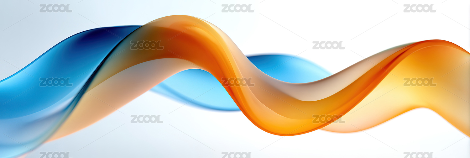 抽象流体丝带飘逸柔和,蓝色橙色光影