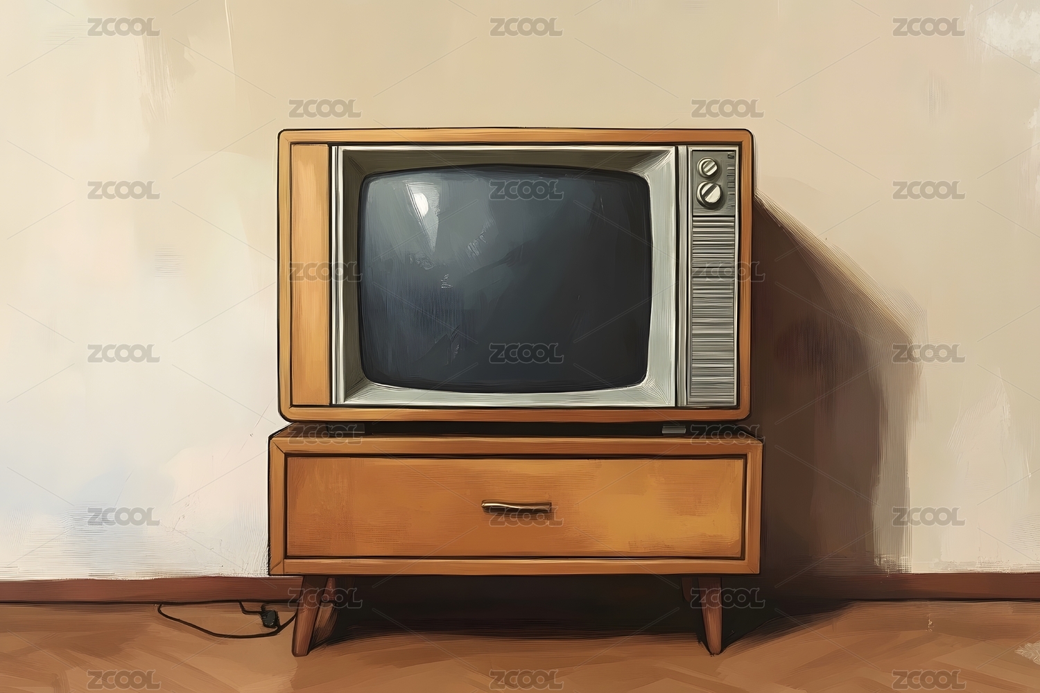 设计,复古,插画,艺术,怀旧,老式,橙色,简洁,手绘,电视机