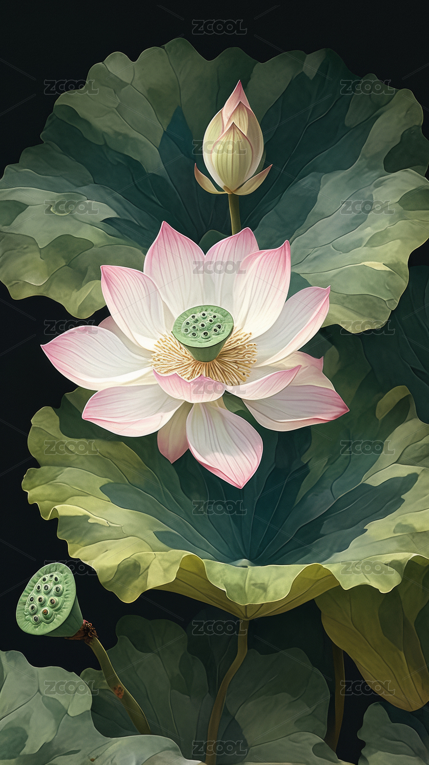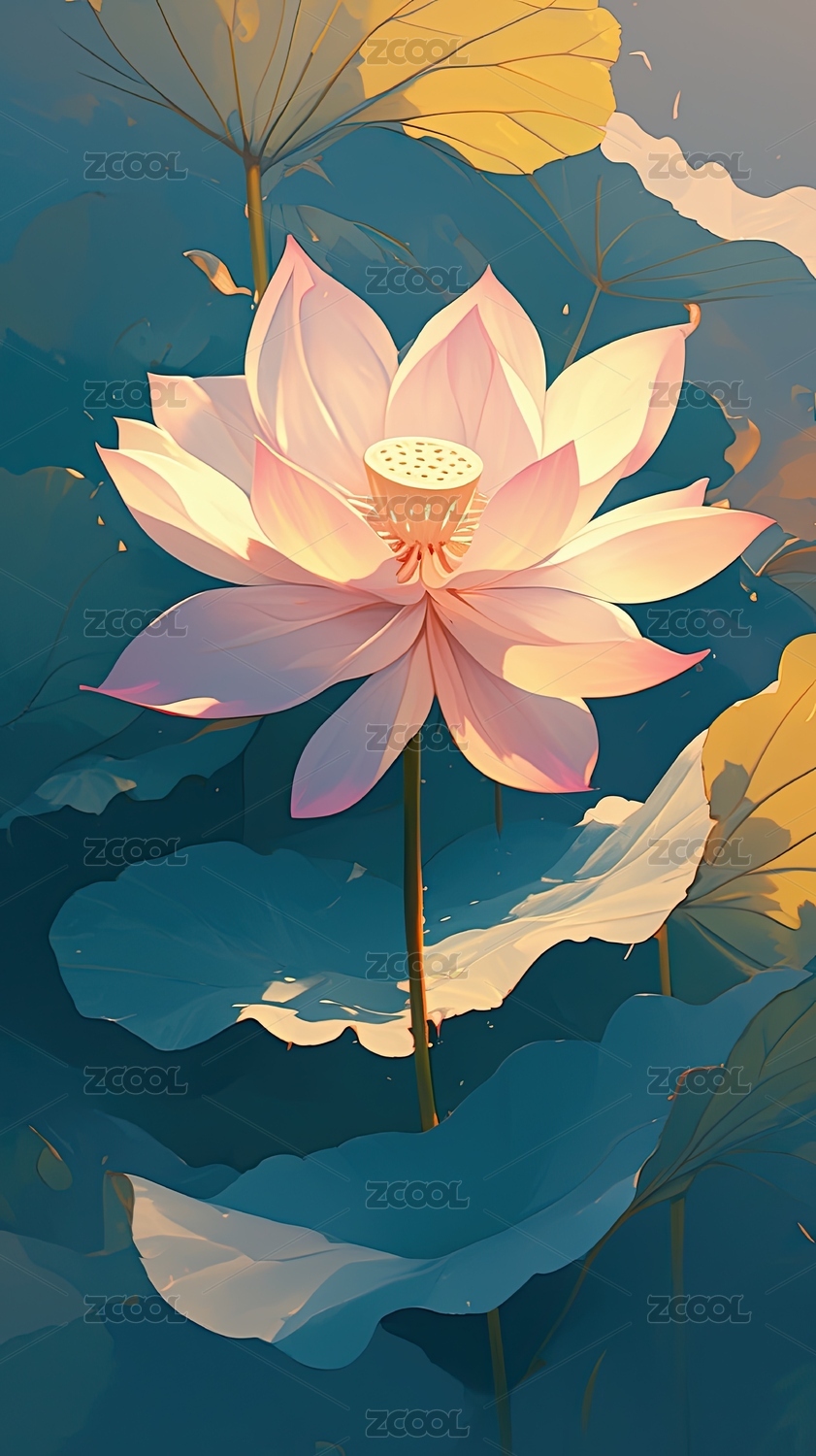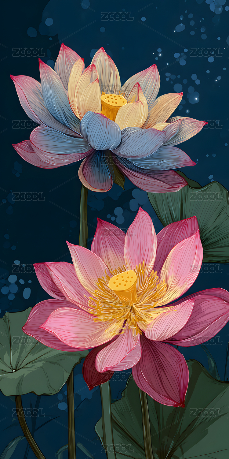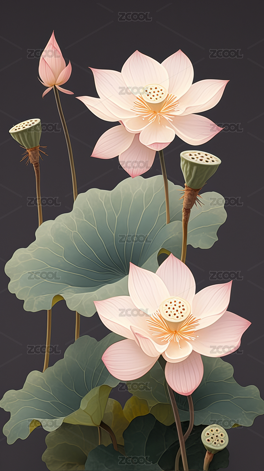 插画,背景,中式,国潮,国风,简约,红色,荷花,莲花,花