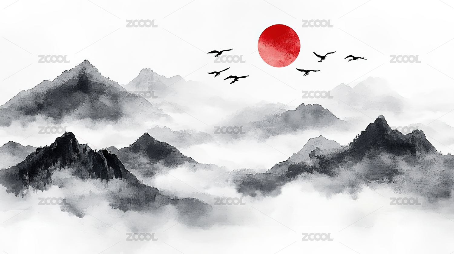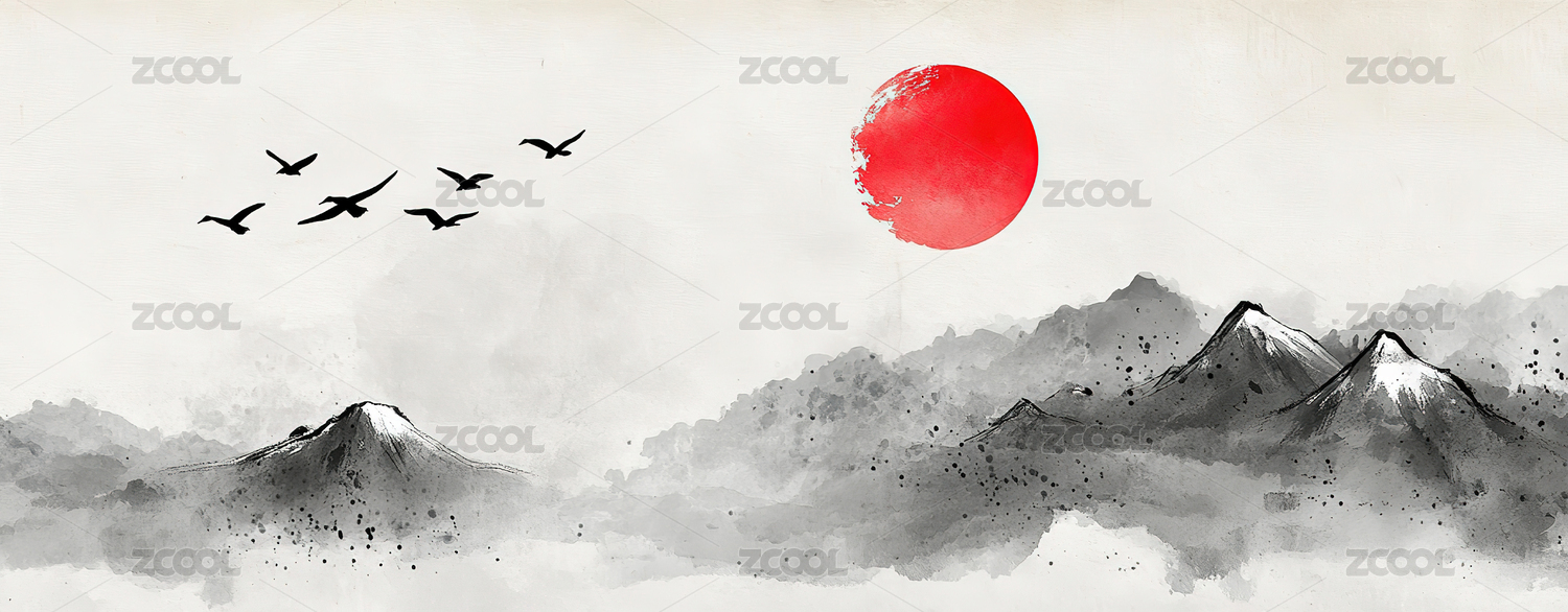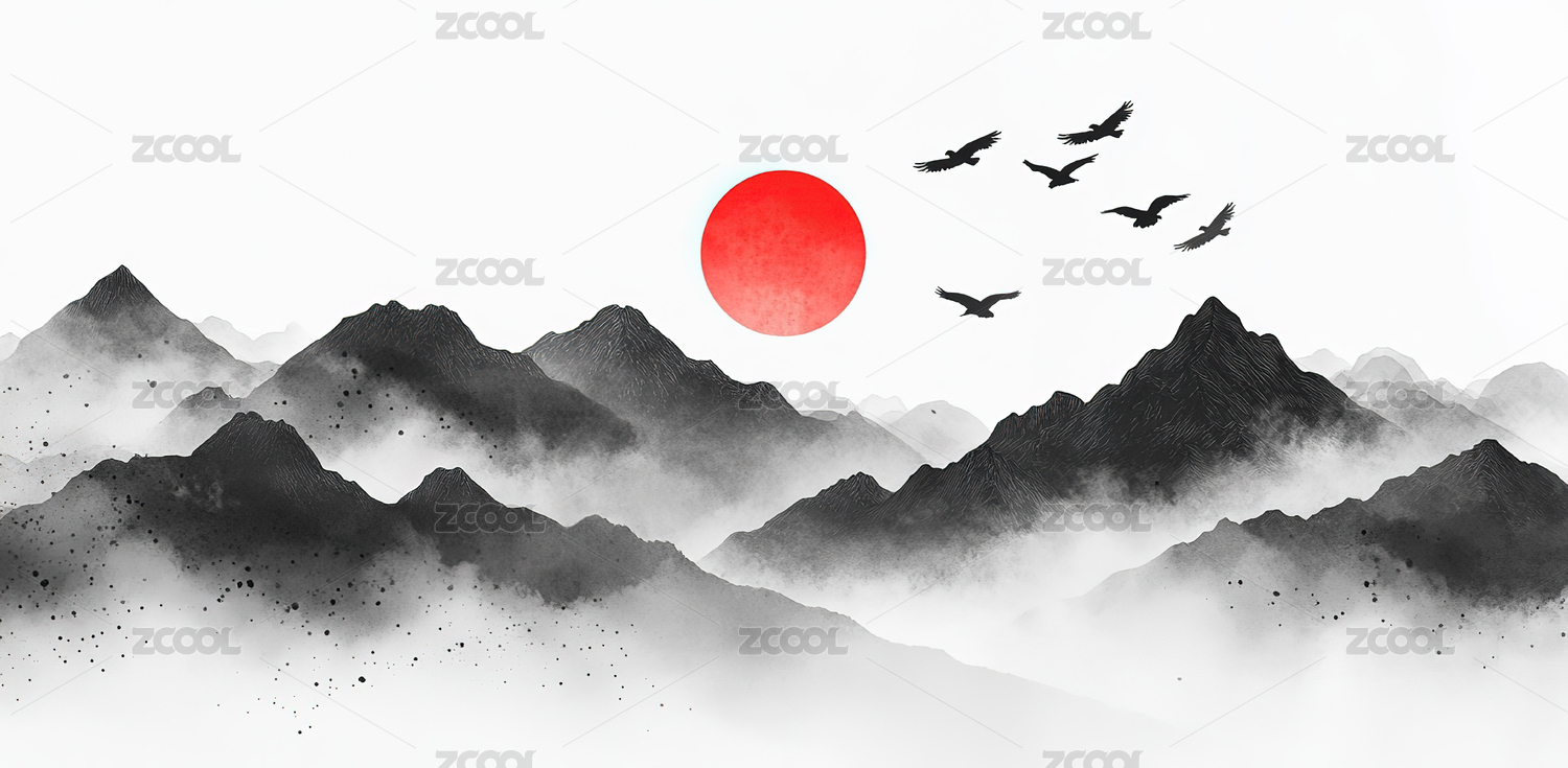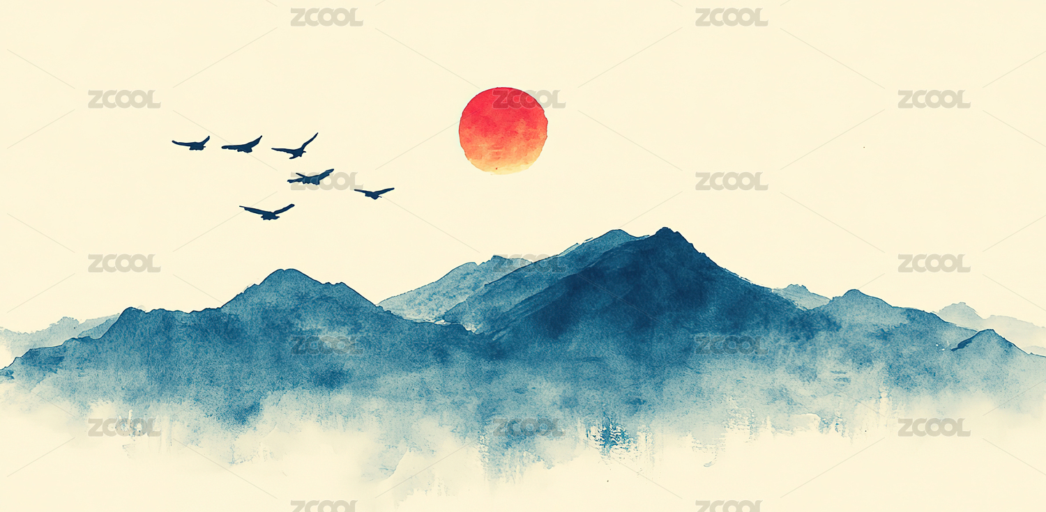 高级简约水墨山水画