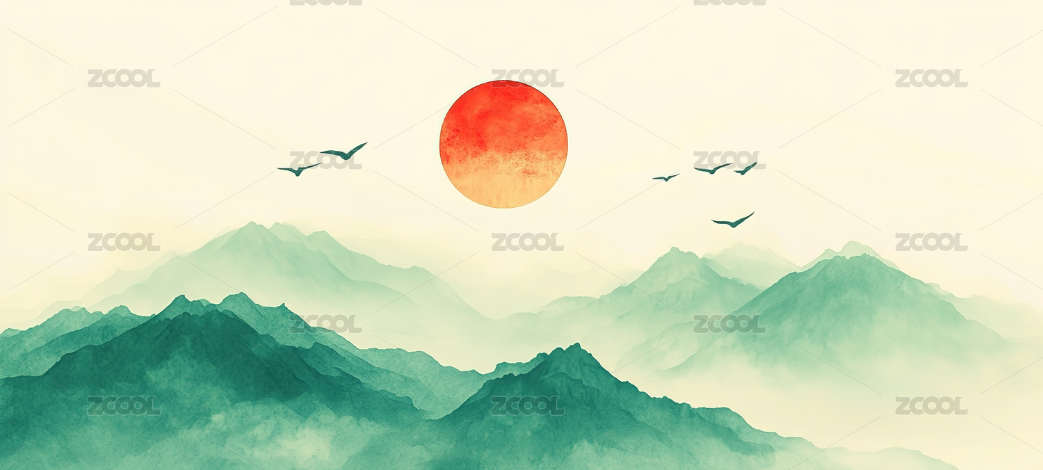 日出山河中国风插画