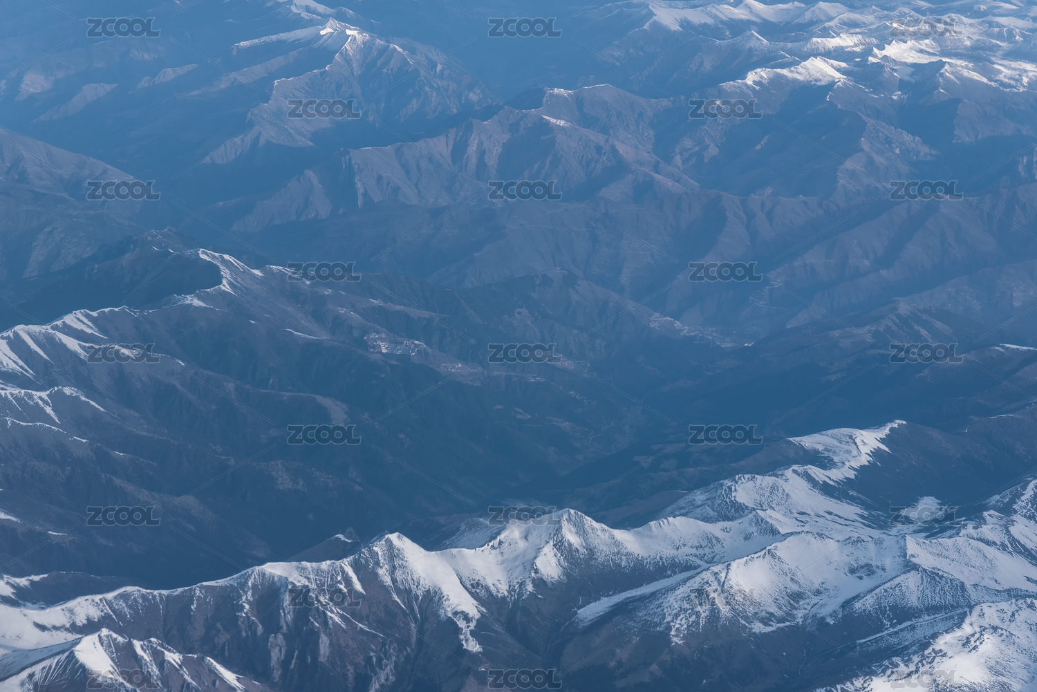 俯拍中国新疆喀什地区云雾缭绕的雪山风景