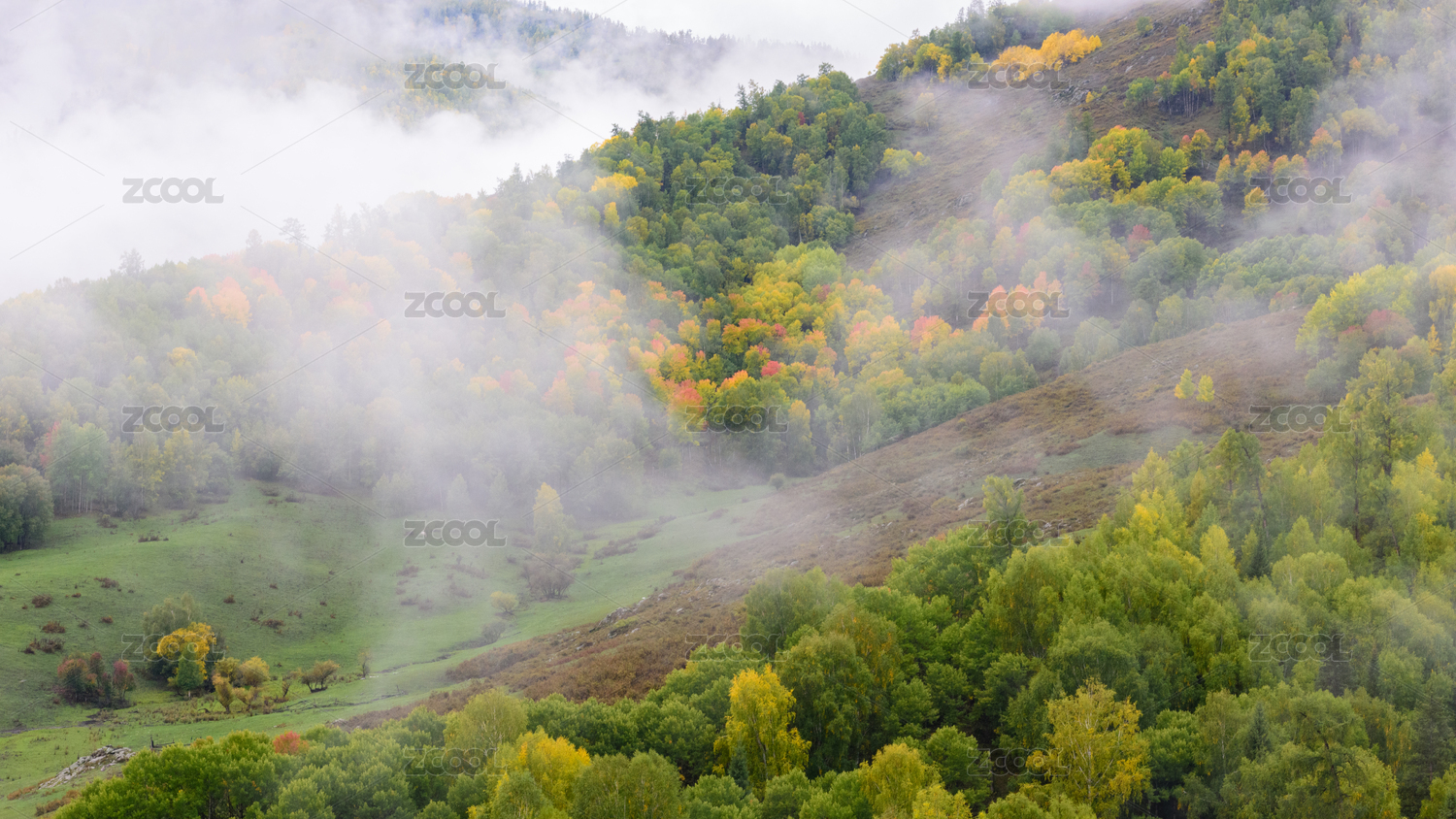 中国新疆阿勒泰云雾秋色