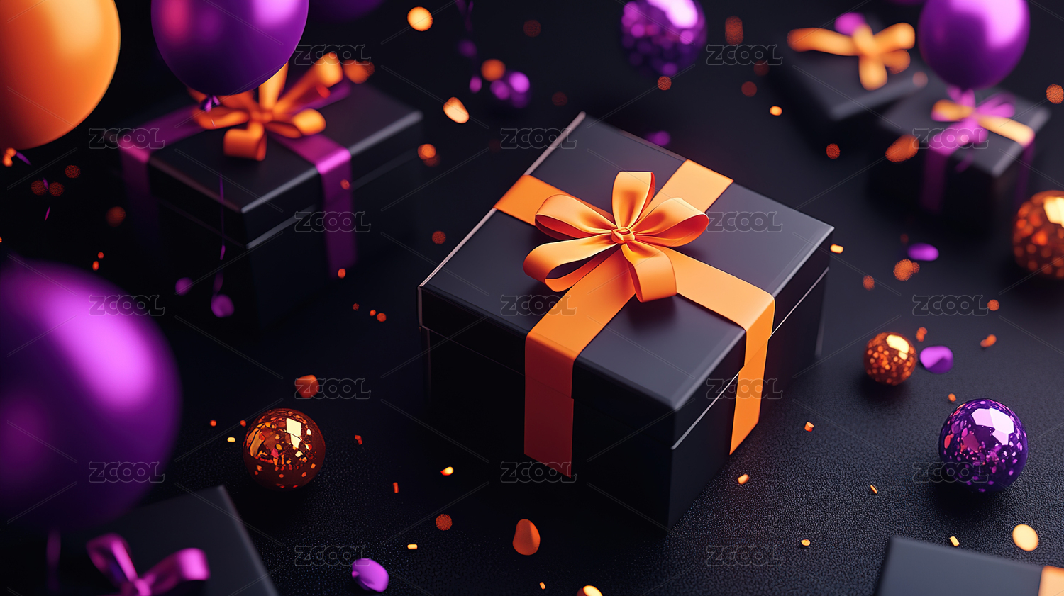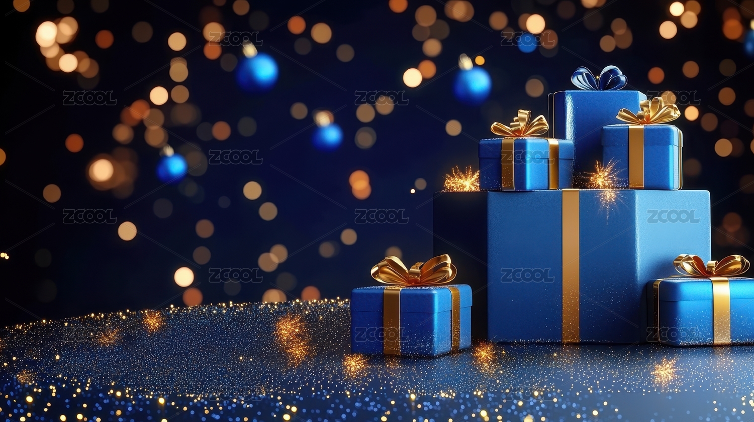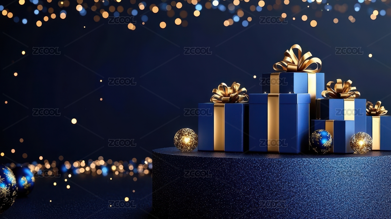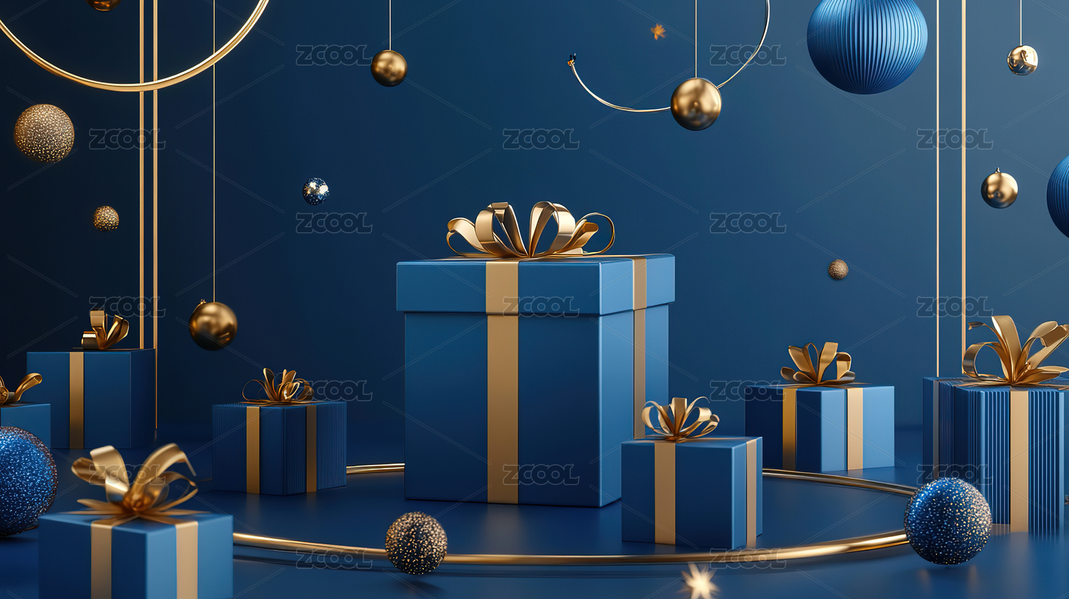 装饰着礼品盒的氛围感产品展台电子商务促销