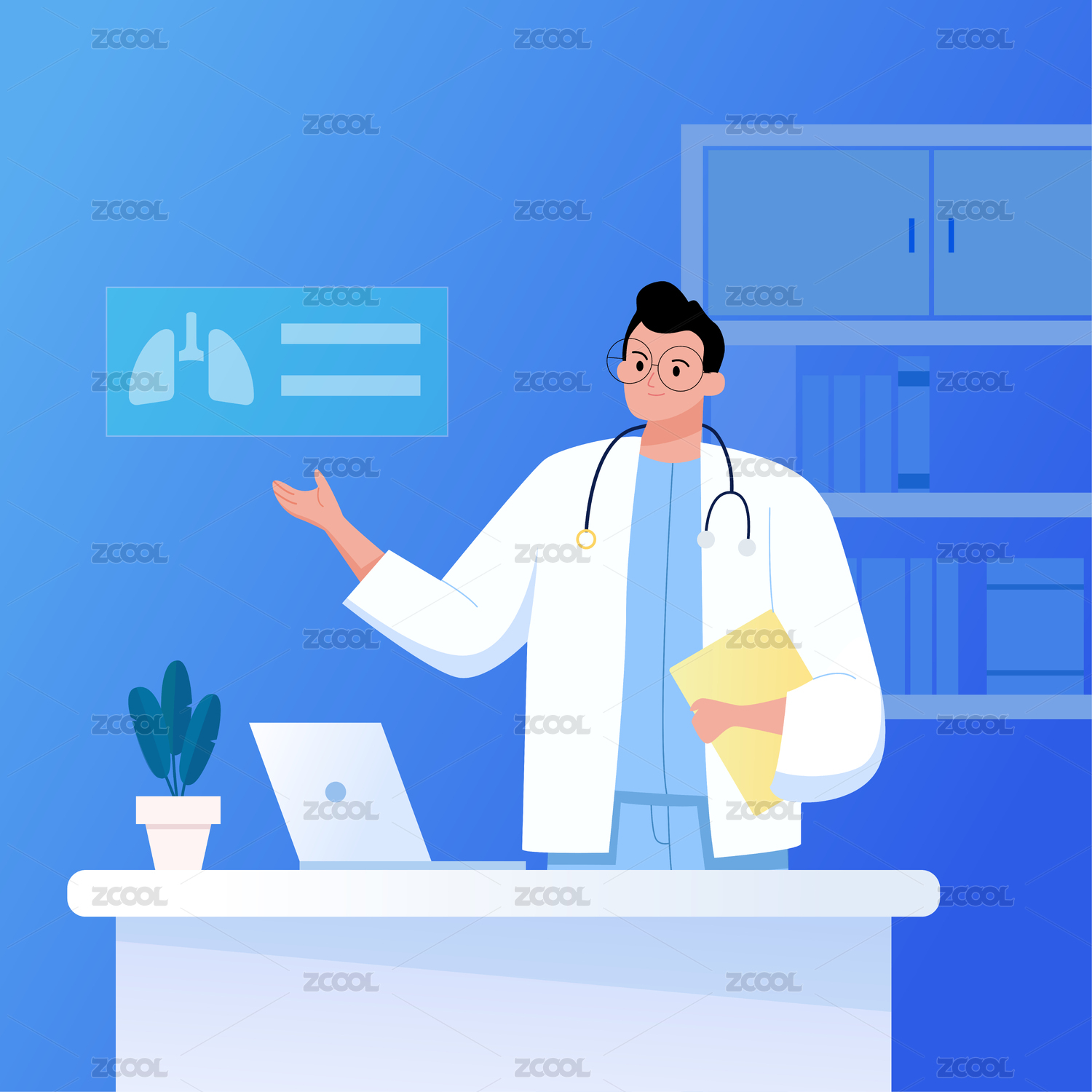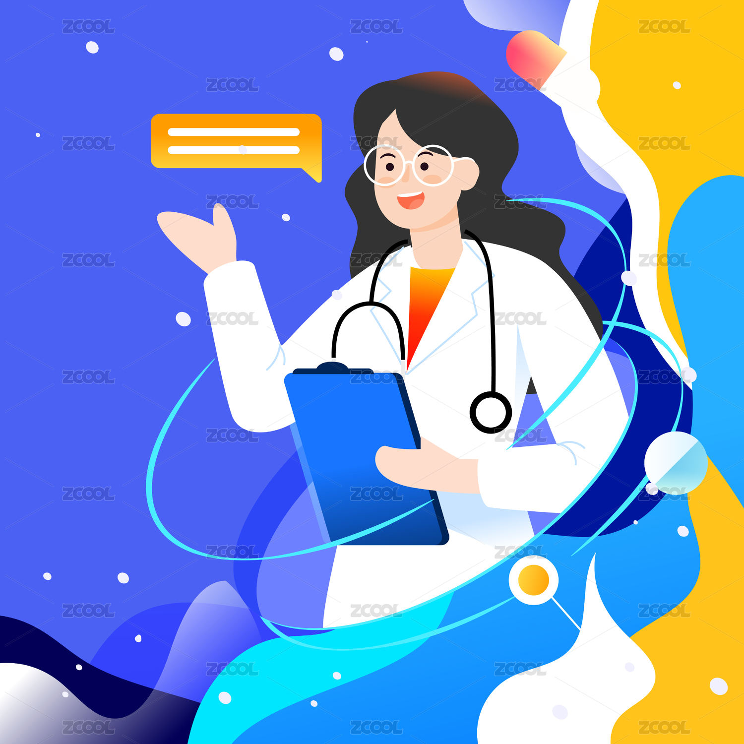 医生插画,医疗场景扁平插画,医疗领域人物插画,人物插画
