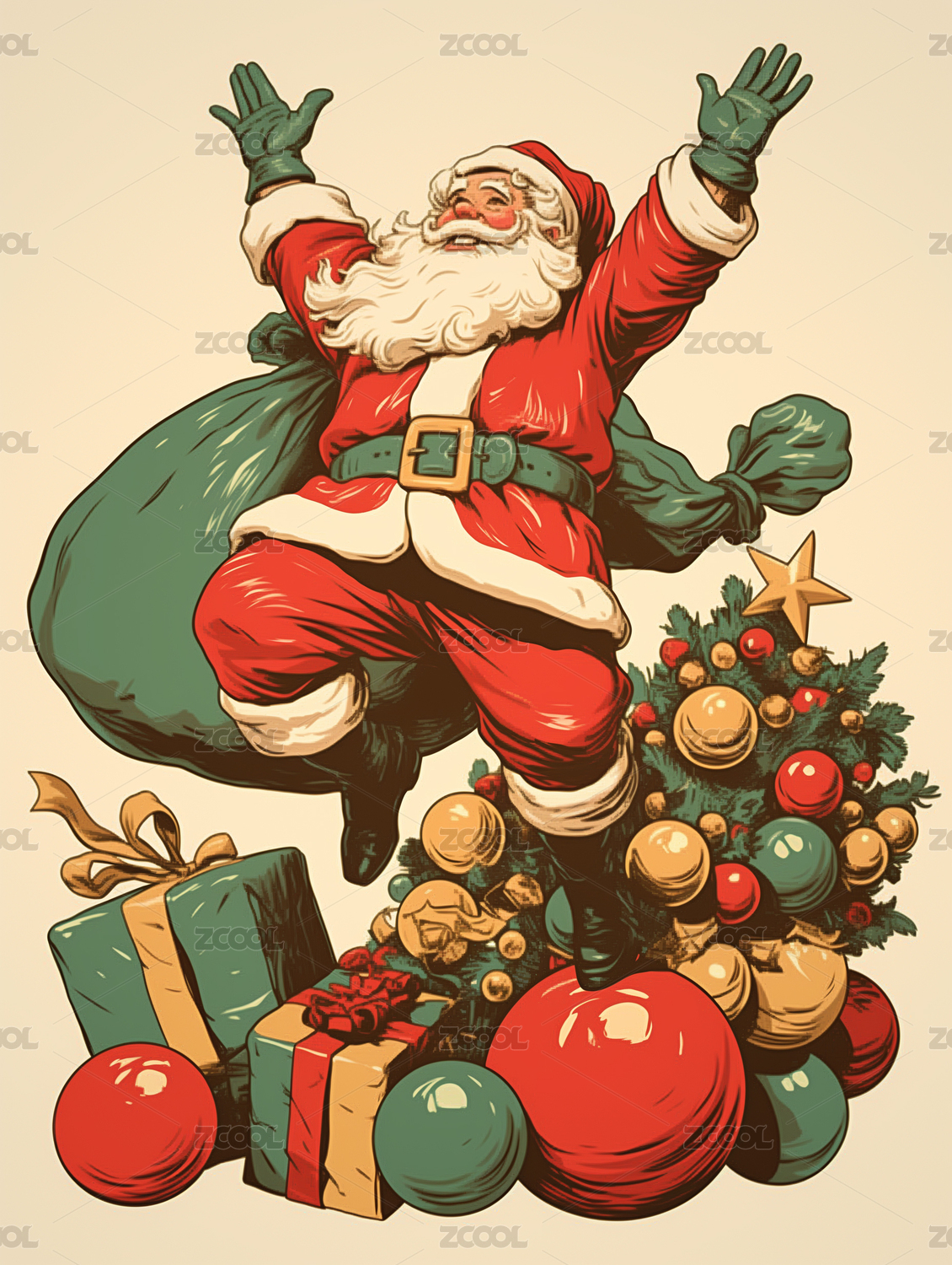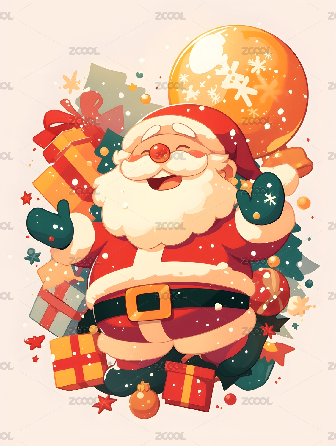 圣诞树插画,圣诞节主题插画,圣诞礼品插画,礼物插画,苹果插画,圣诞老人插画,圣诞节,圣诞主题