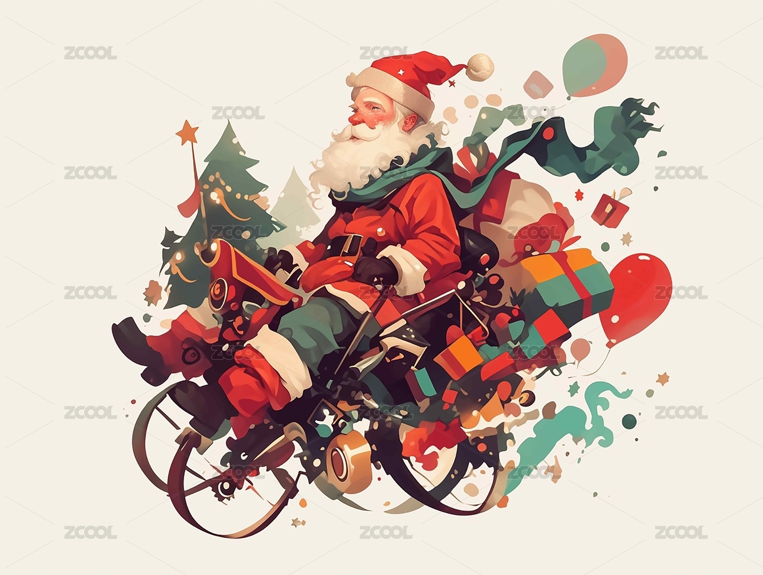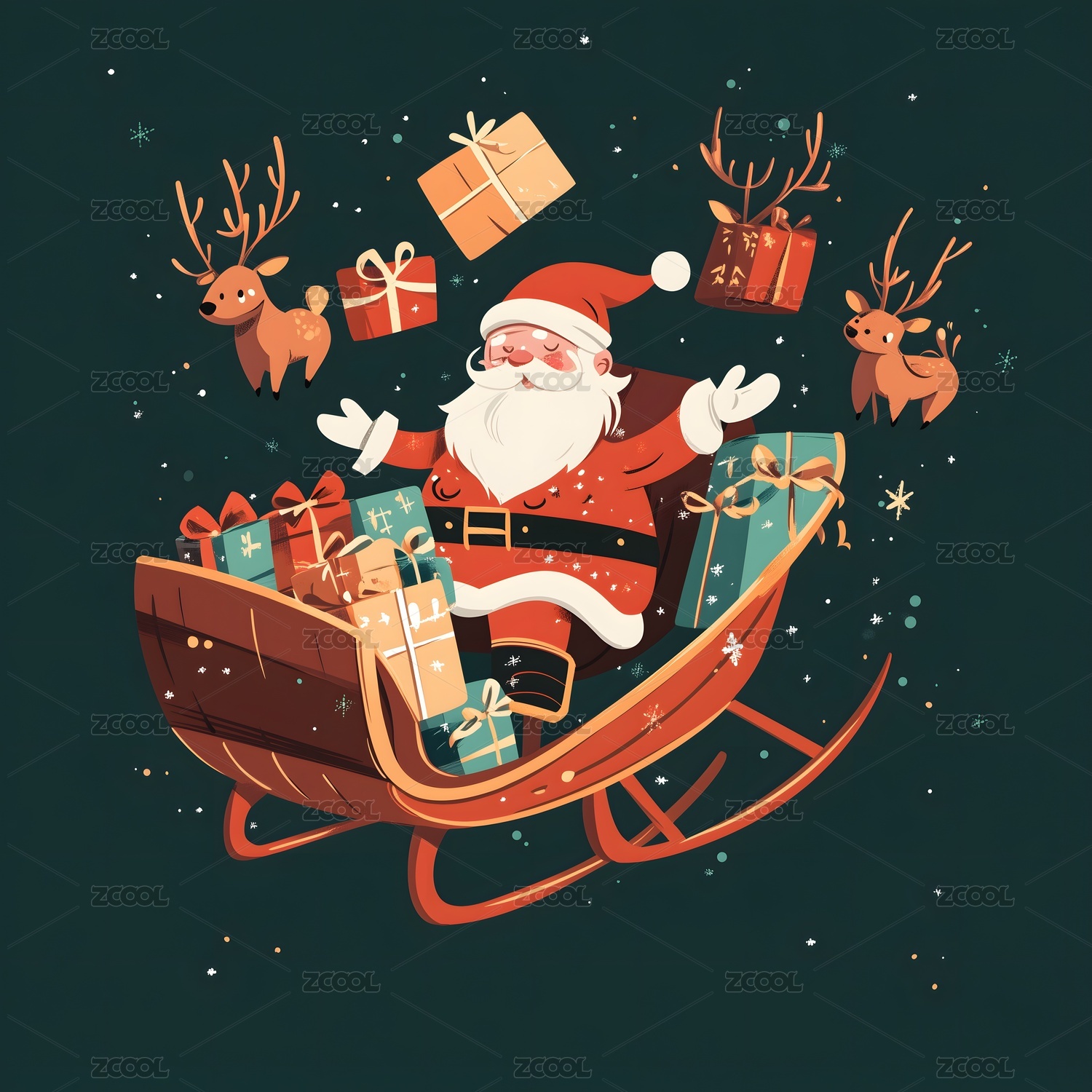 卡通圣诞老人驯鹿白色背景服装图案插画