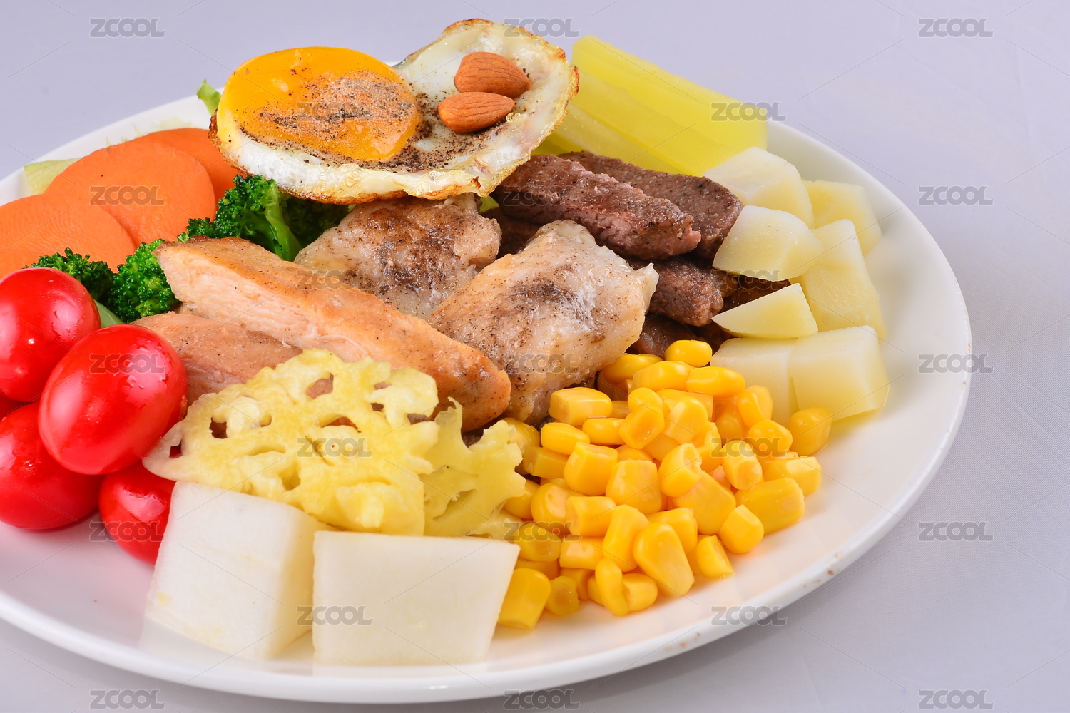 沙拉 冷餐减 肥餐 牛肉 鱼肉 蔬菜 虾 酸奶