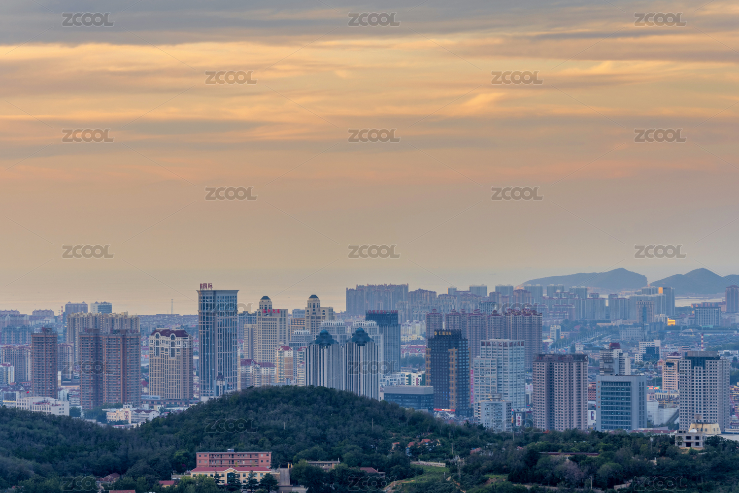 大连莲花山观景台俯瞰城市建筑黄昏夜景