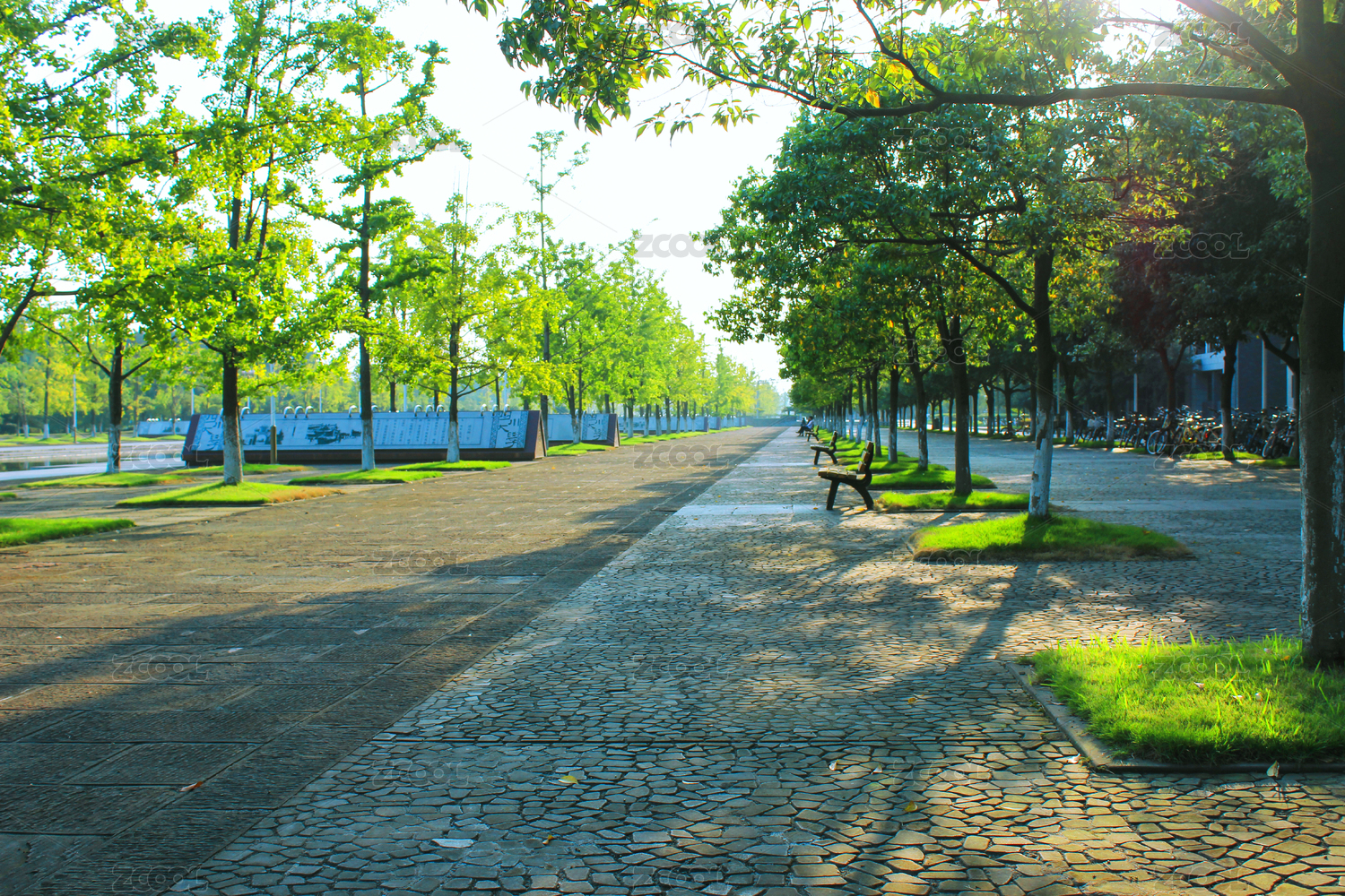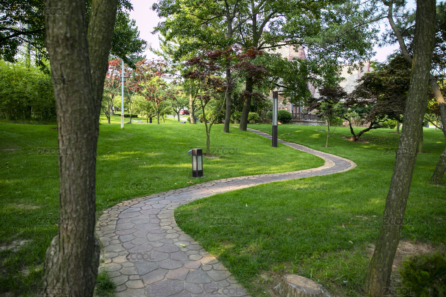 韩国水原仁溪艺术公园 早晨的树林和草地