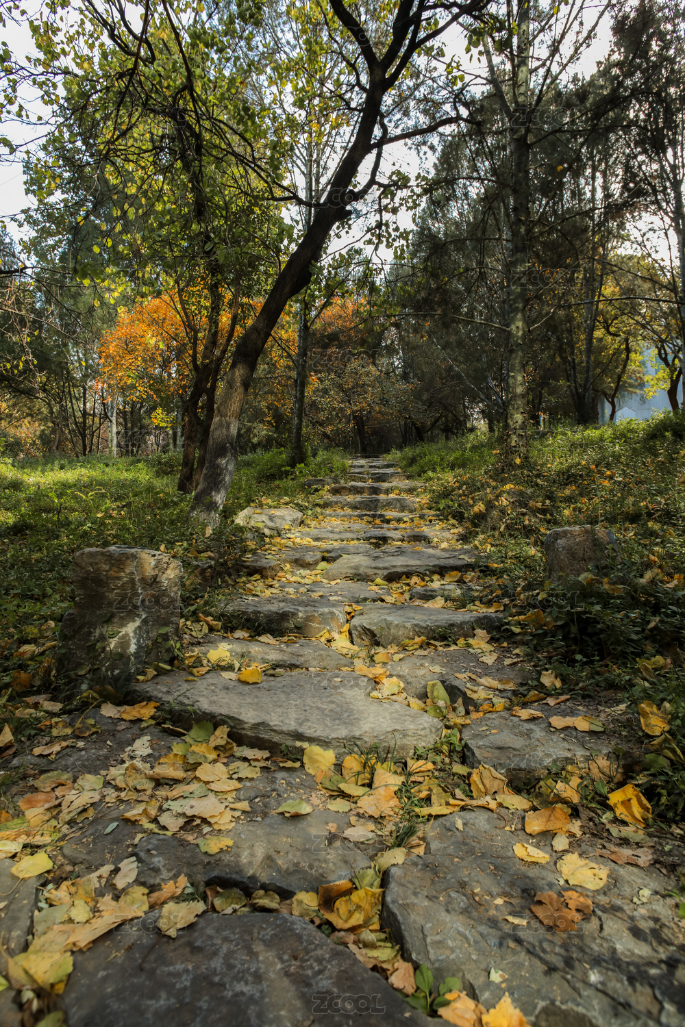秋天秦岭山中的石阶