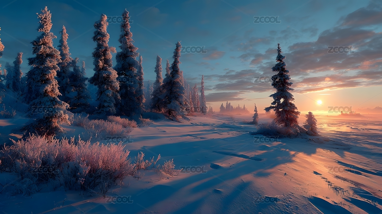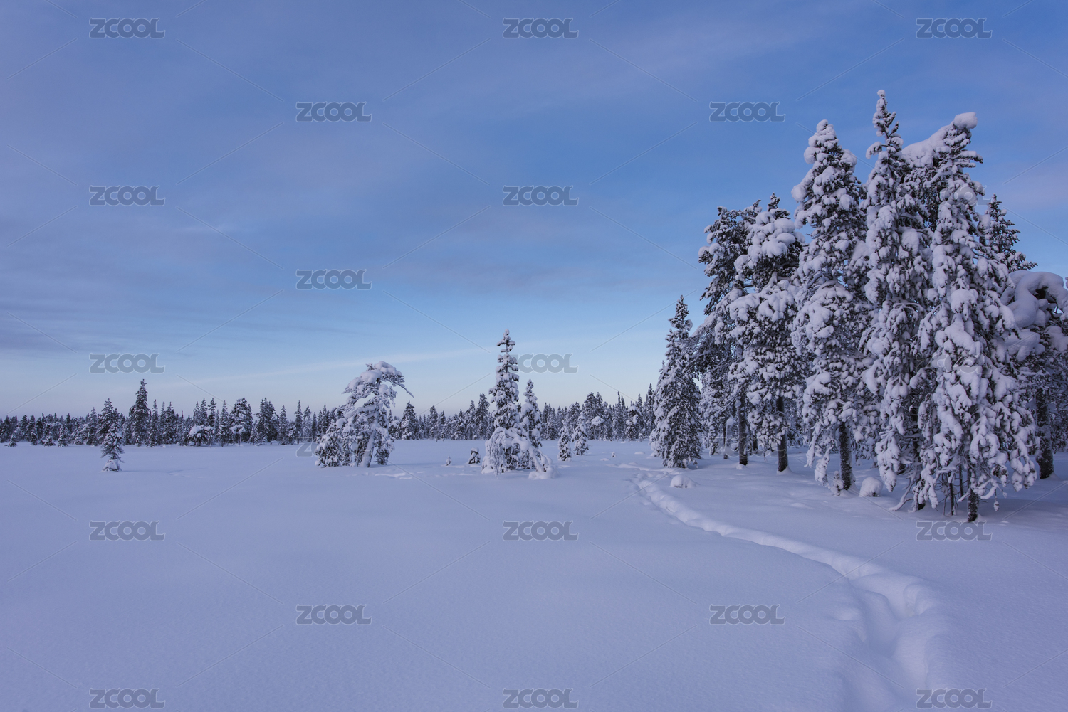 俄罗斯摩尔曼斯克 拉普兰森林腹地冬季景观