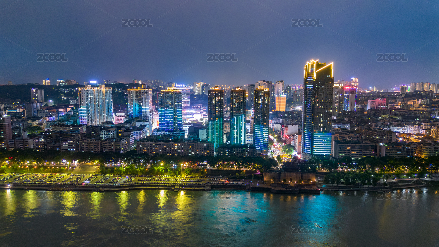 四川宜宾三江汇流城市夜景
