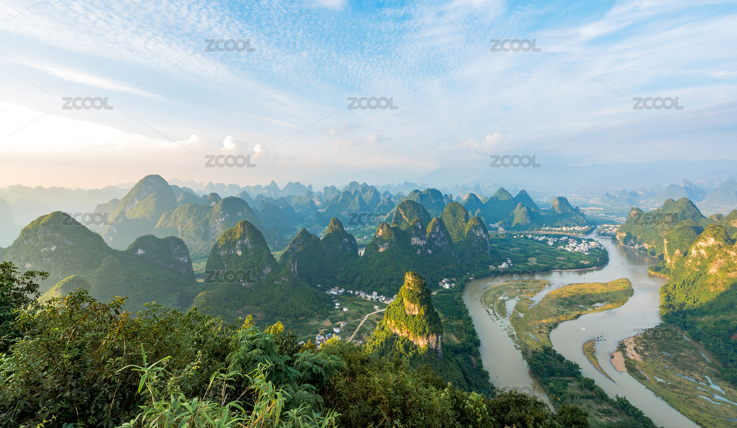 广西桂林阳朔兴坪古镇喀斯特峰林自然风光