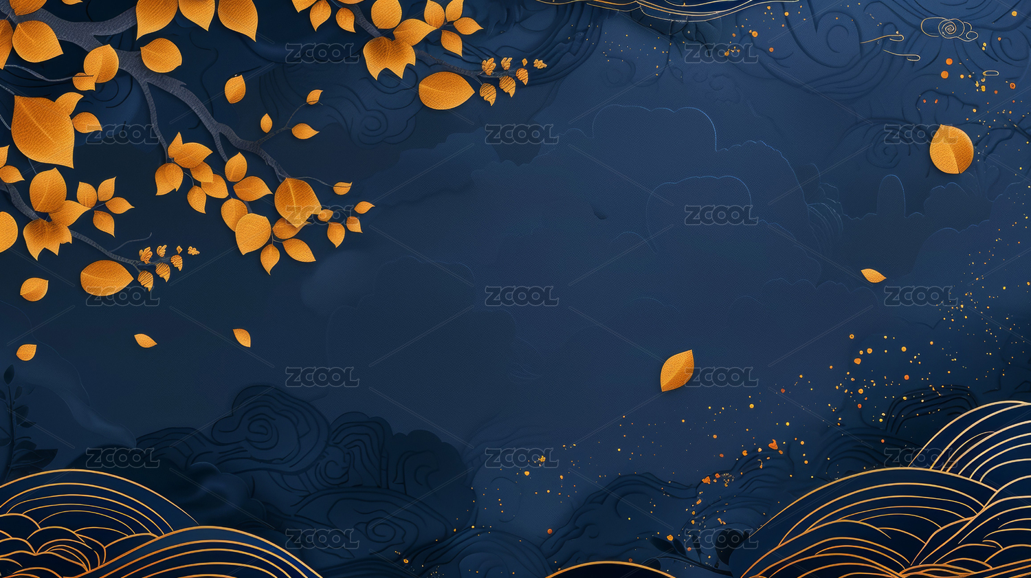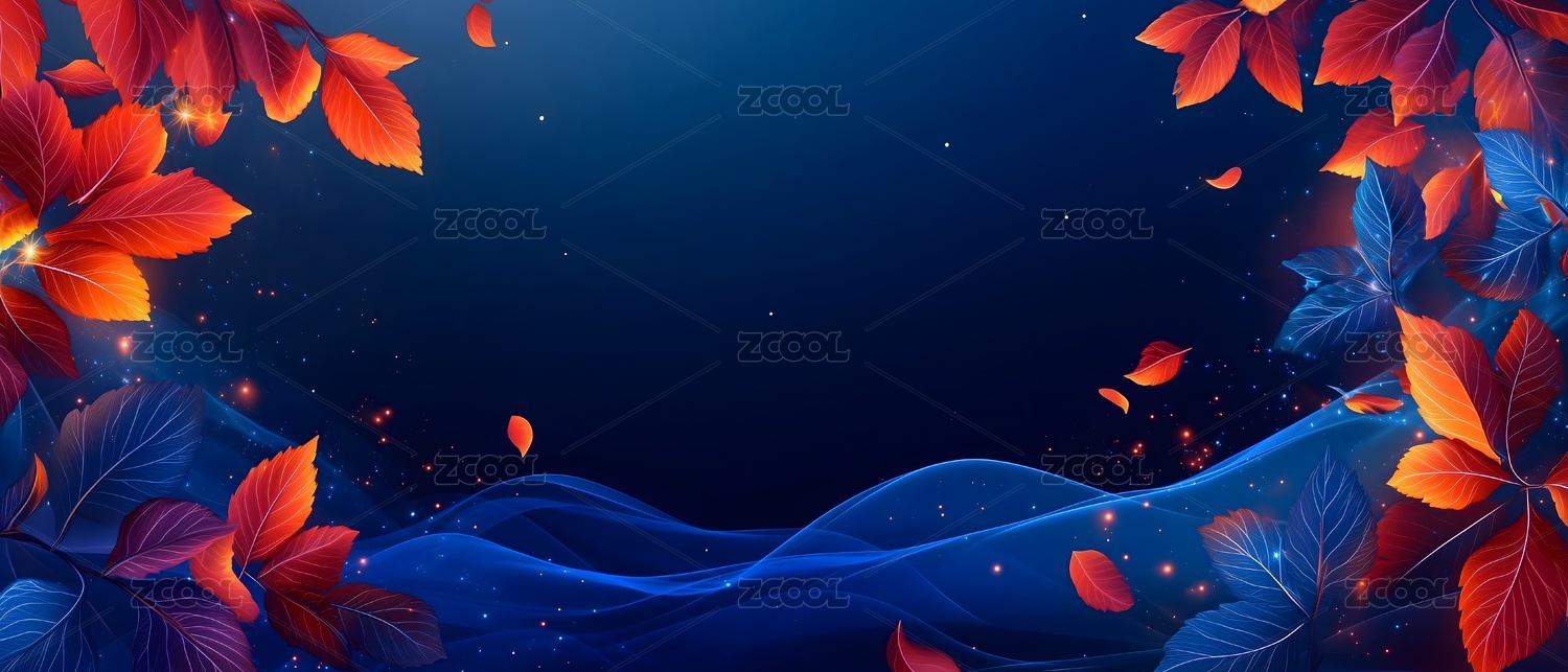蓝金色调树叶主题背景