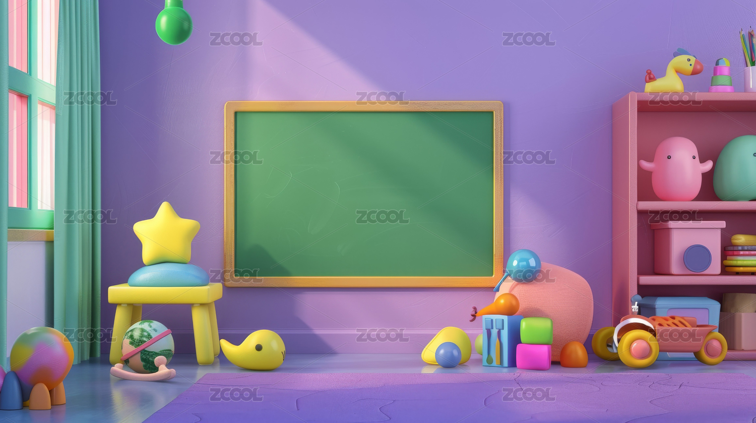 3D明亮舒适托儿所儿童房游戏场所背景