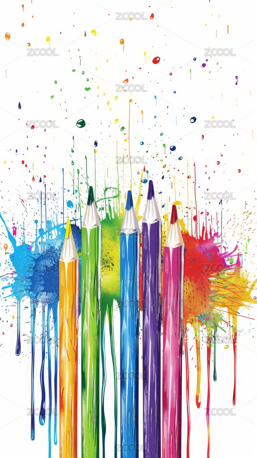 AIGC202402,彩色,色彩,蜡笔,白色,笔触,铅笔,彩虹,画画,七彩