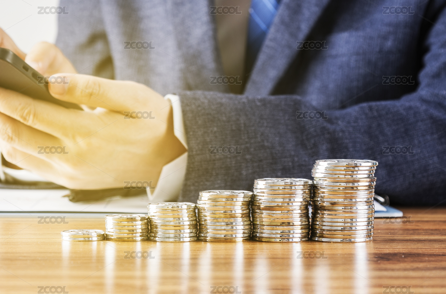 一摞摞垒高的钱币,金融业概念