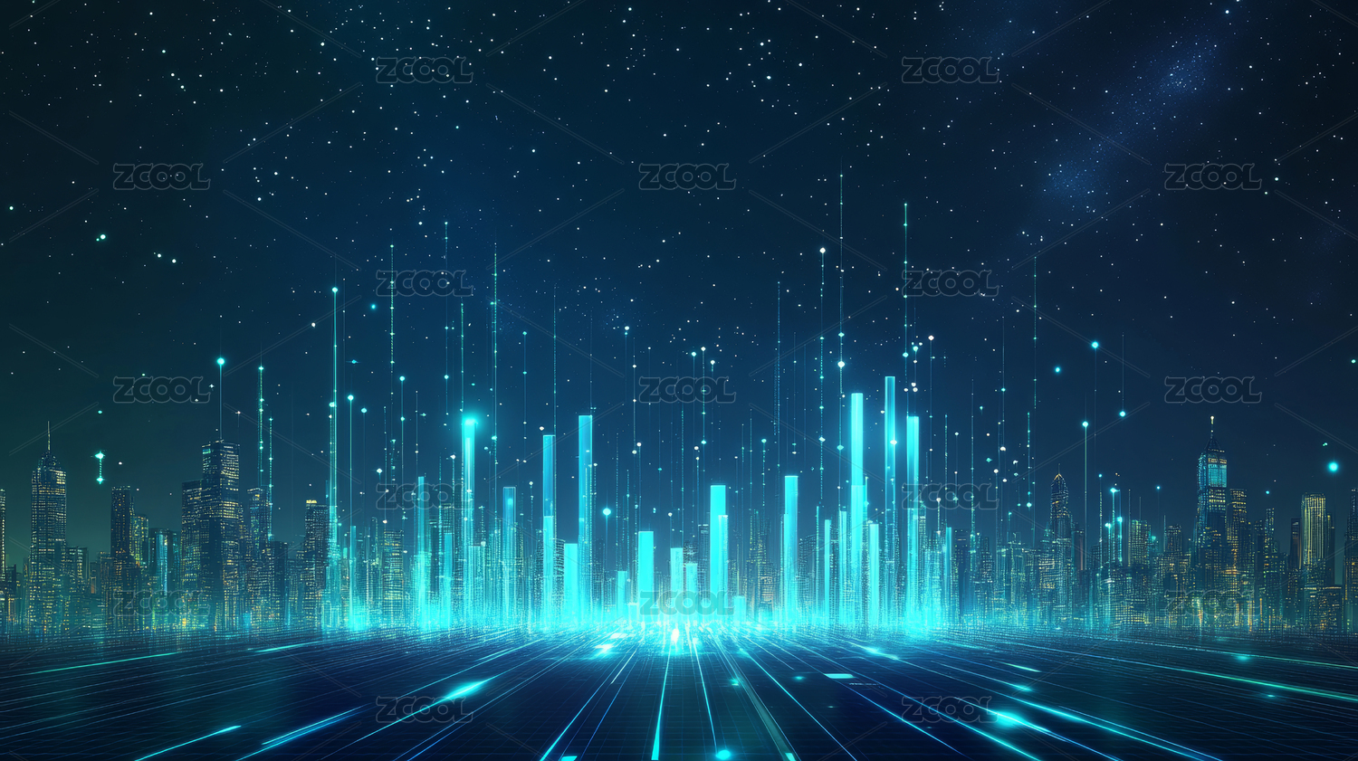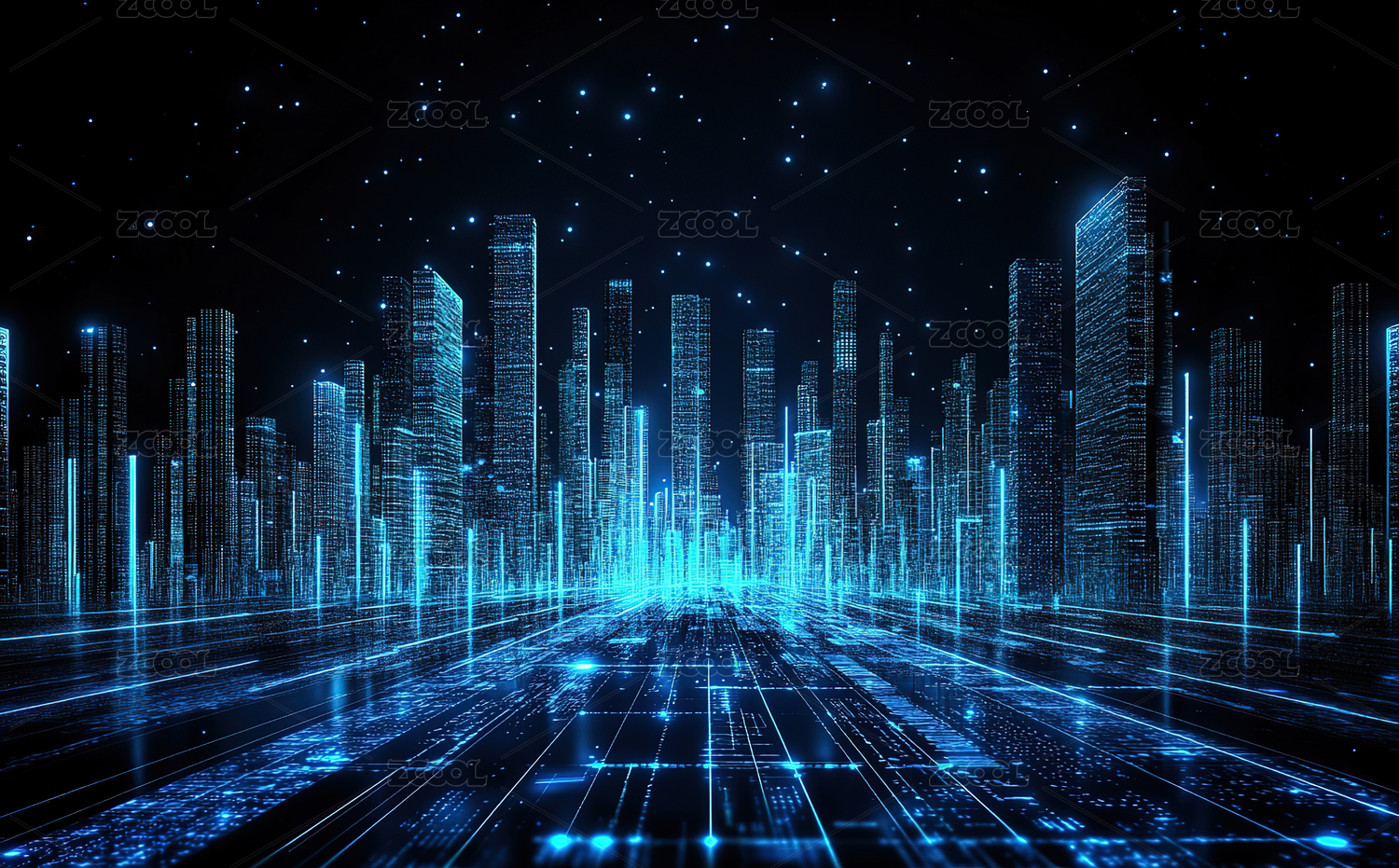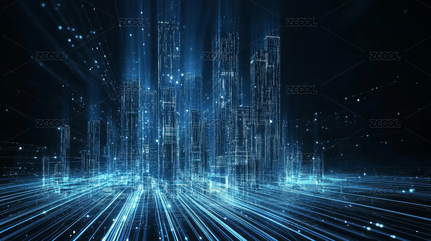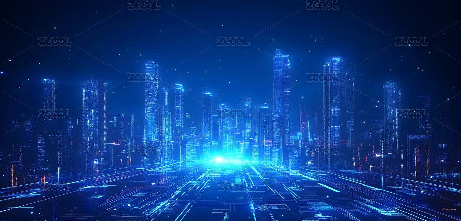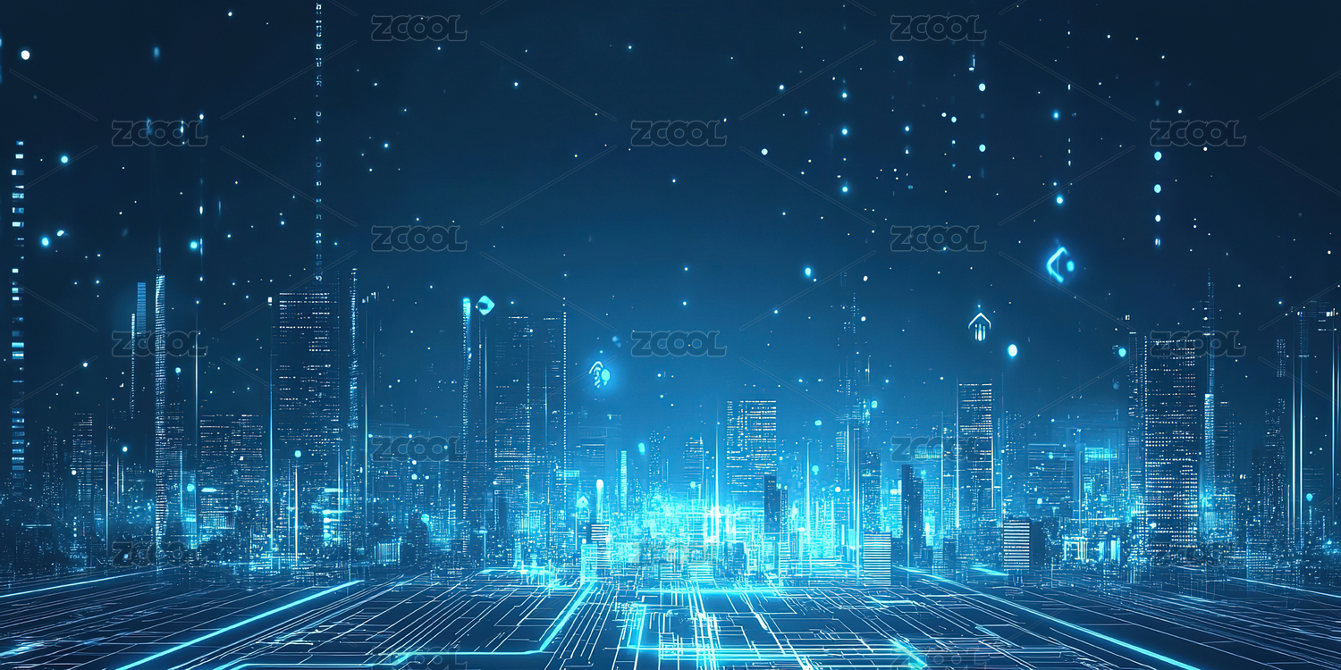 蓝色科技城市天际线