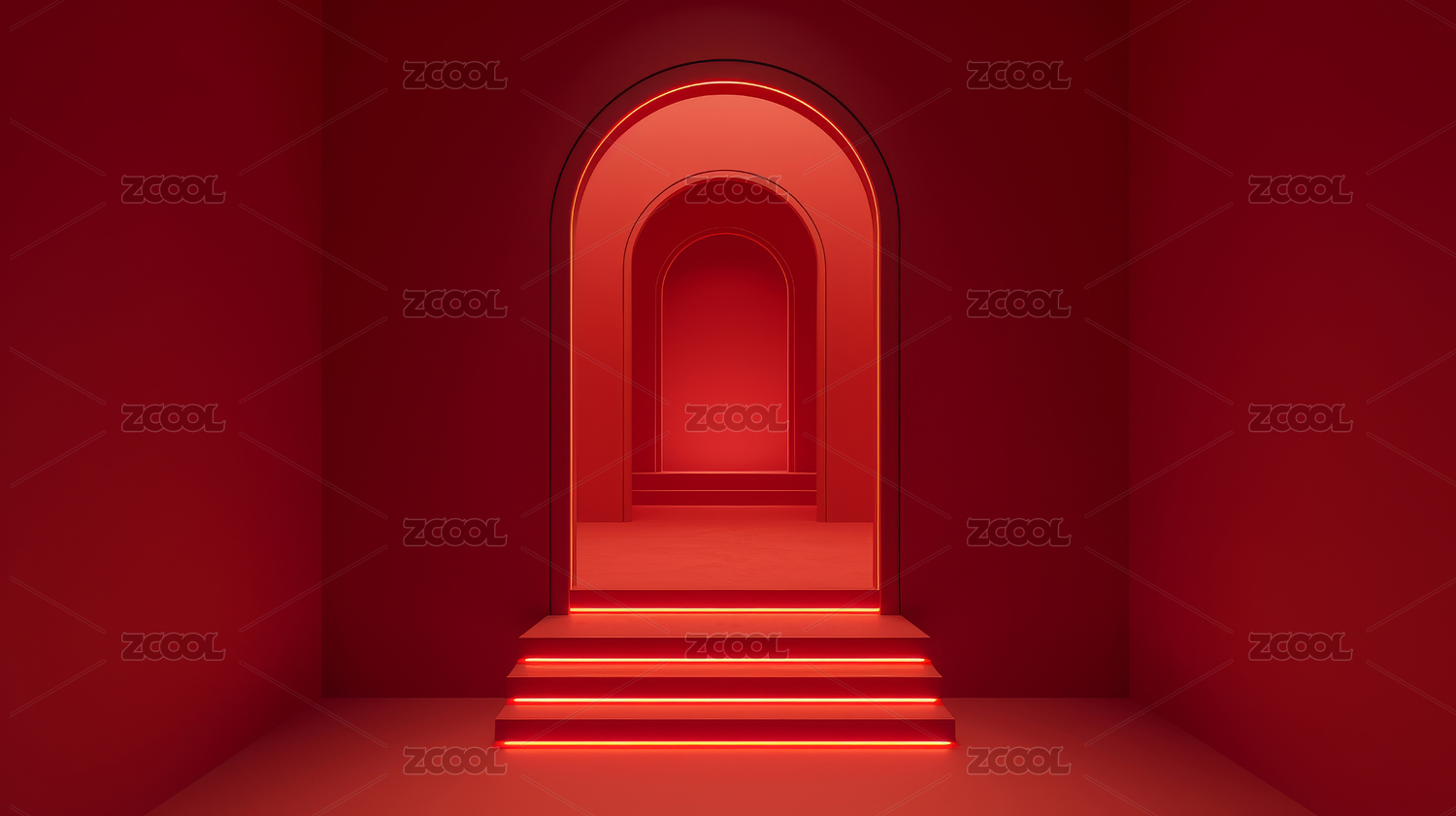 红色,光影,背景,室内,艺术,抽象,氛围,设计,拱门,通道
