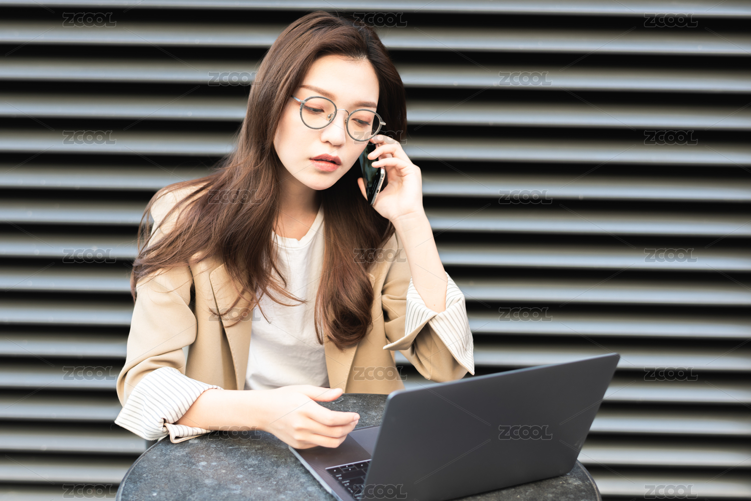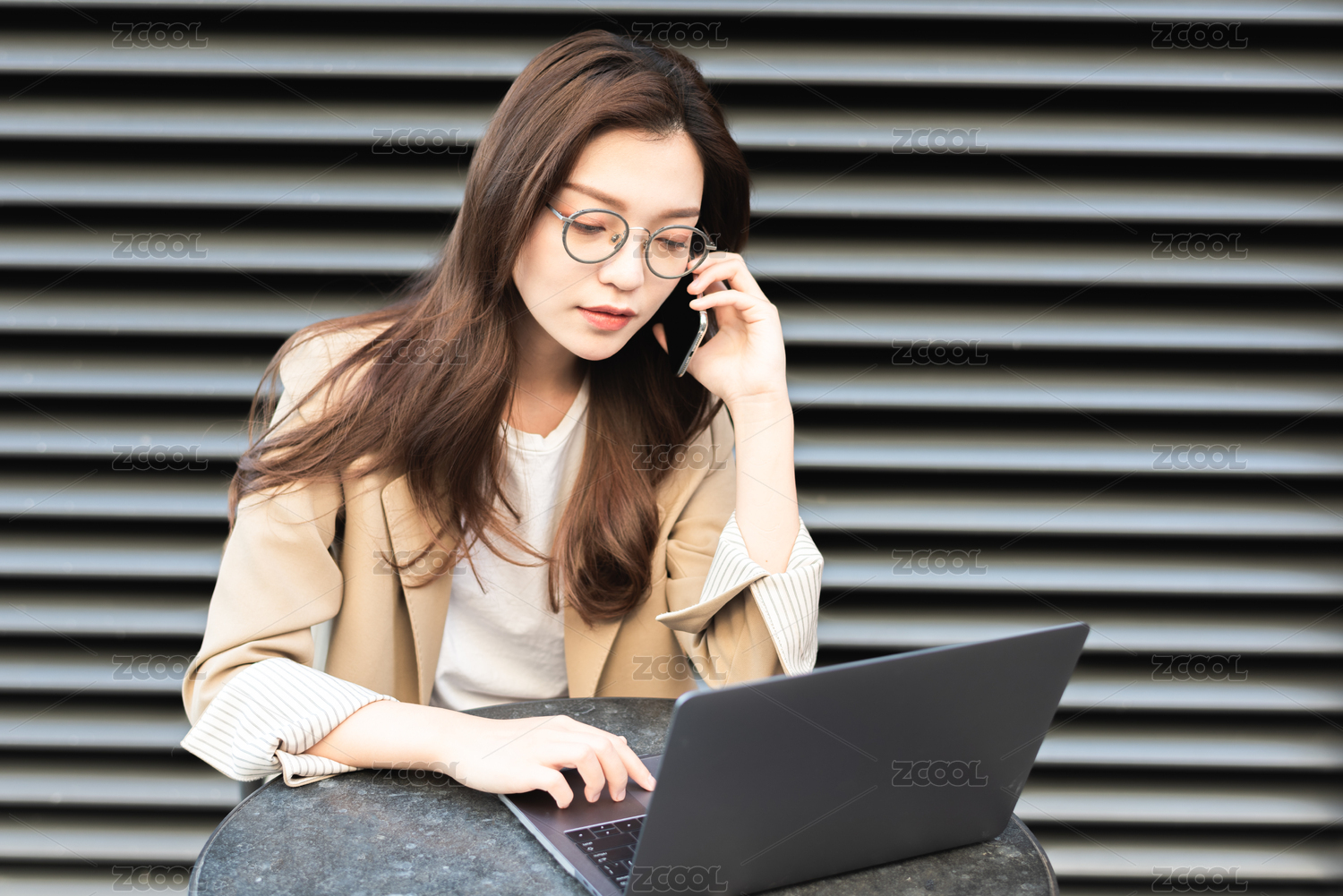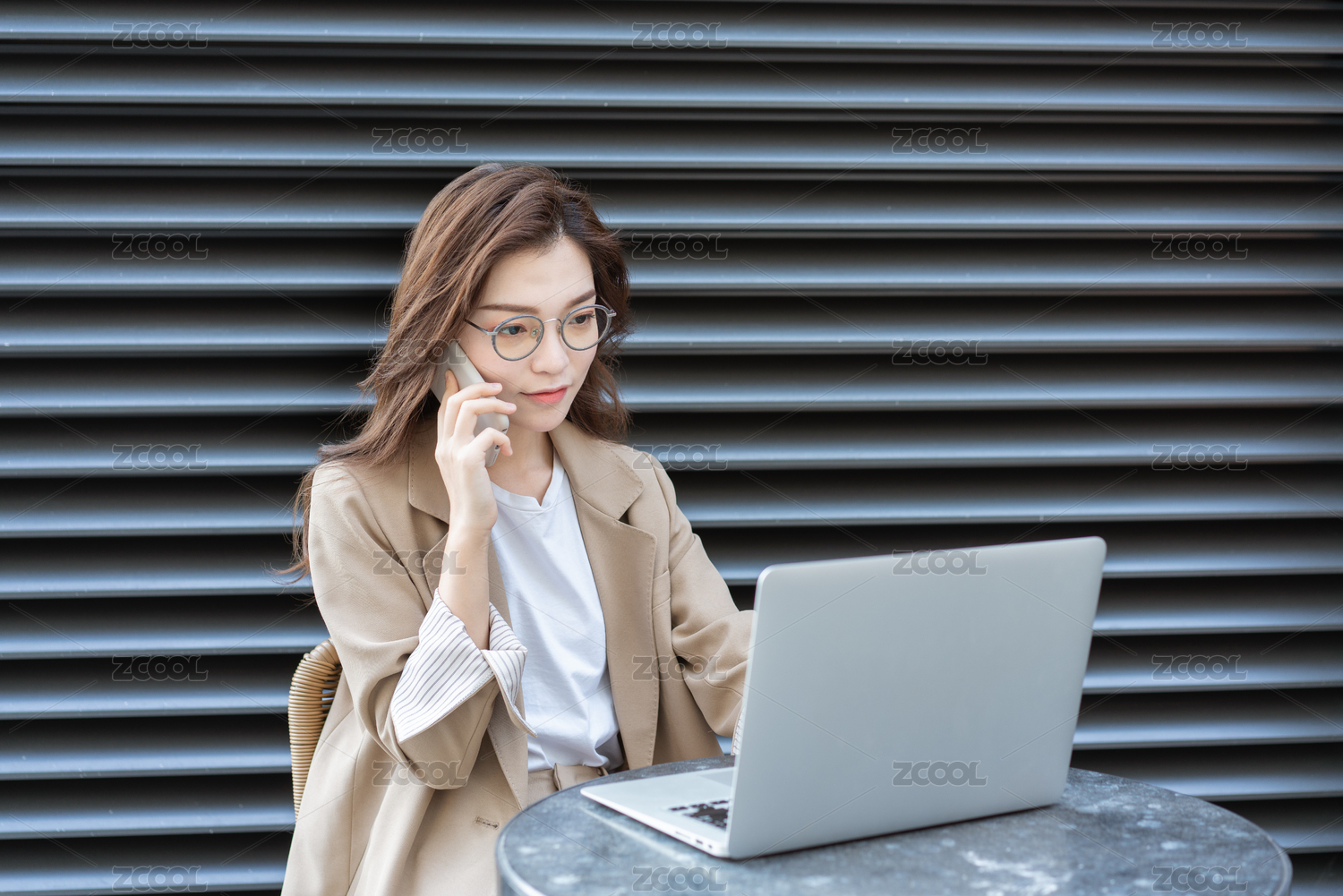 年轻商务女士在户外办公