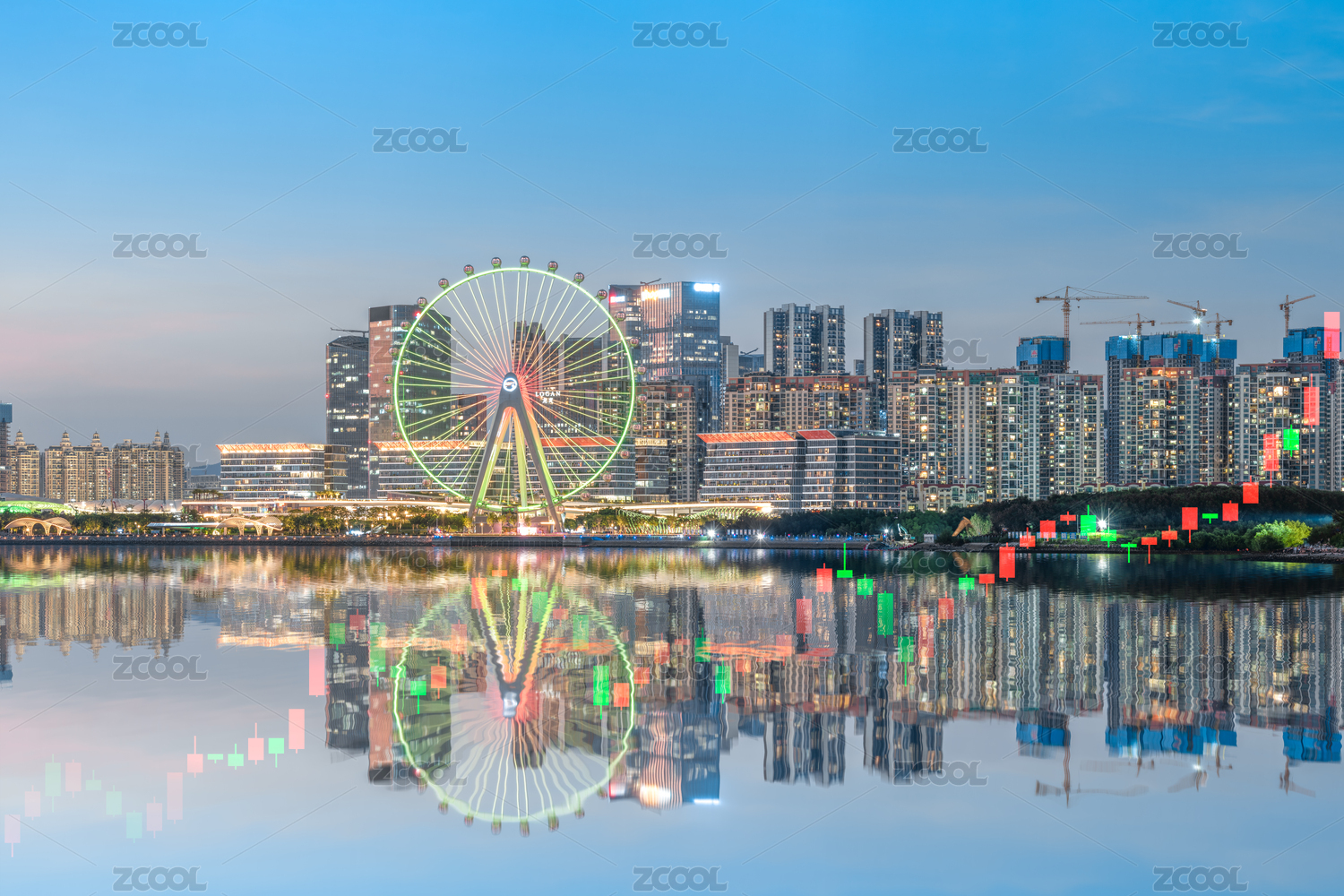 深圳宝安区滨海文化公园摩天轮城市天际线